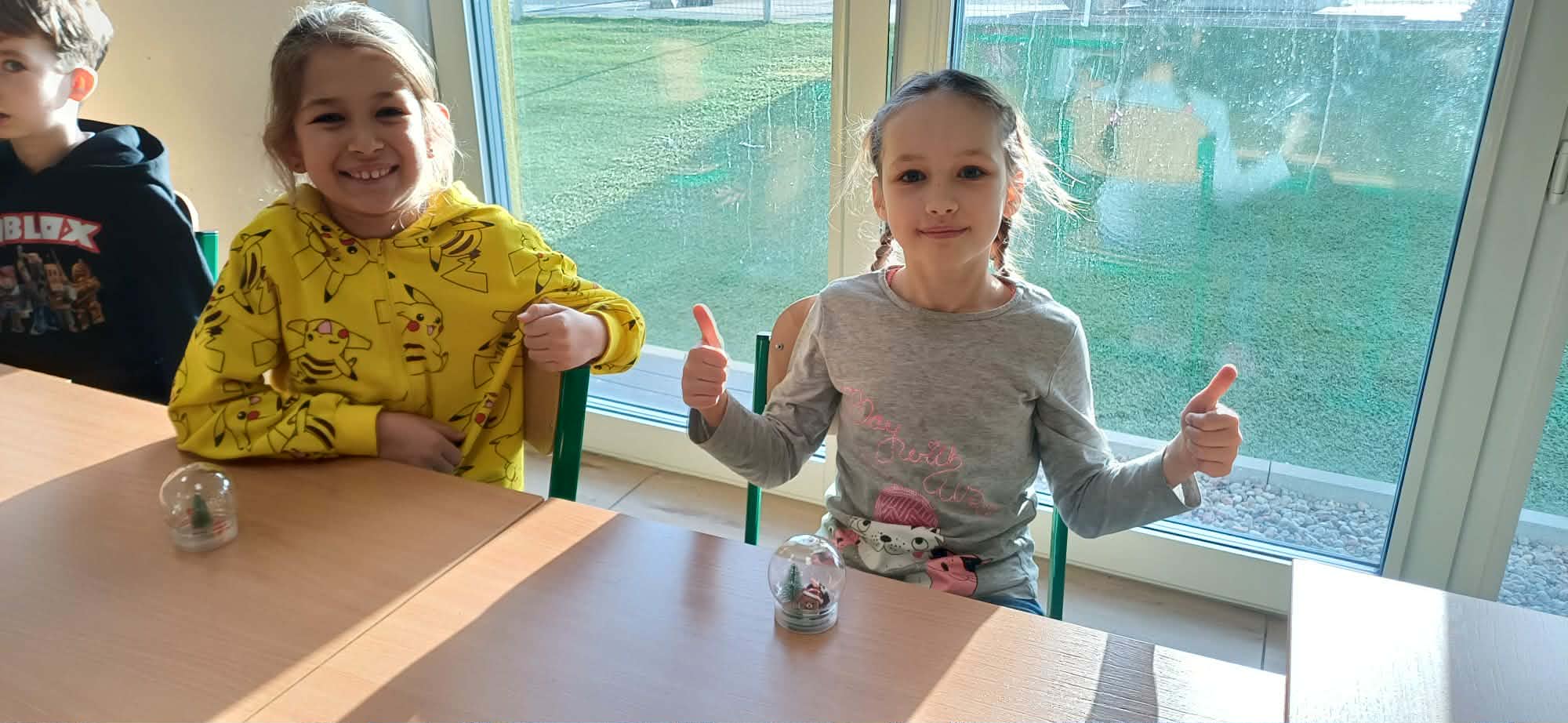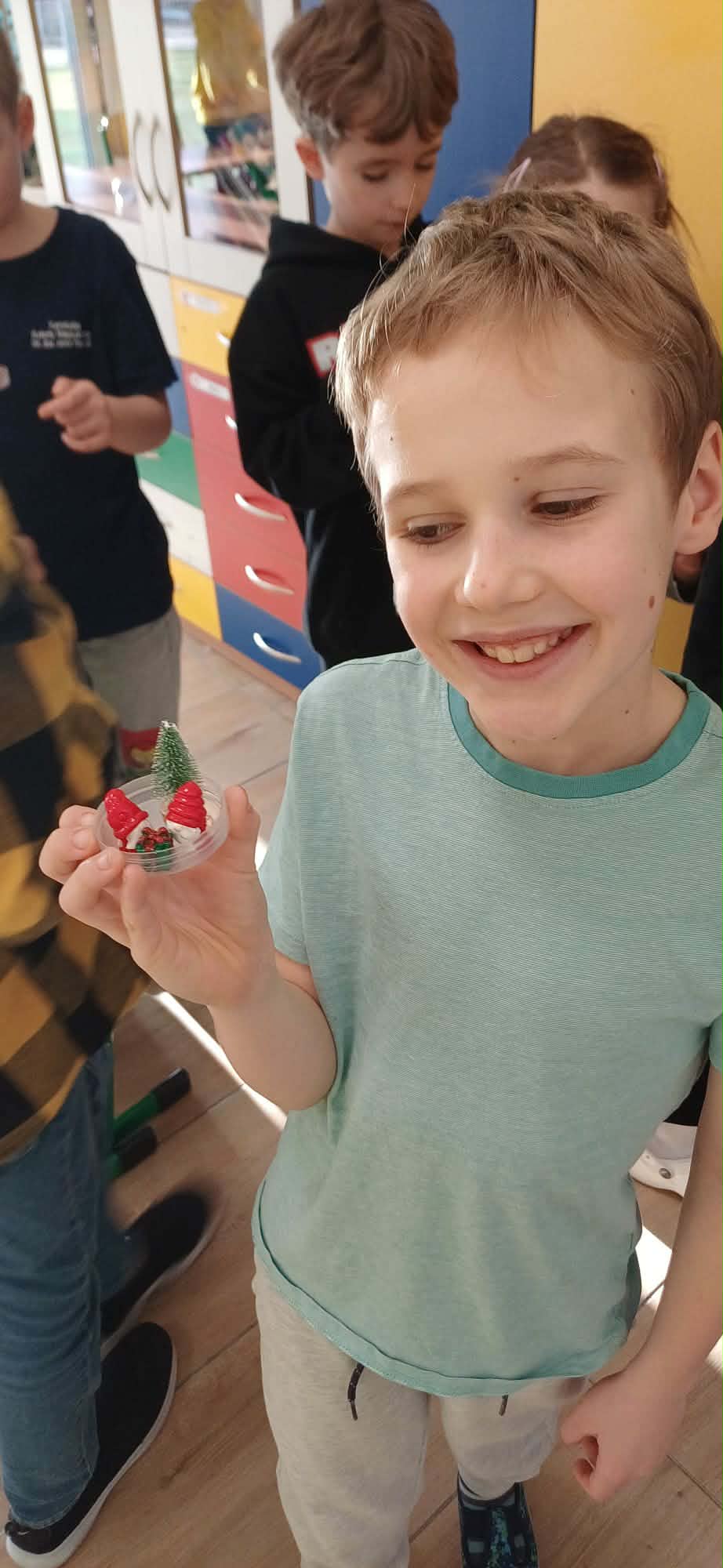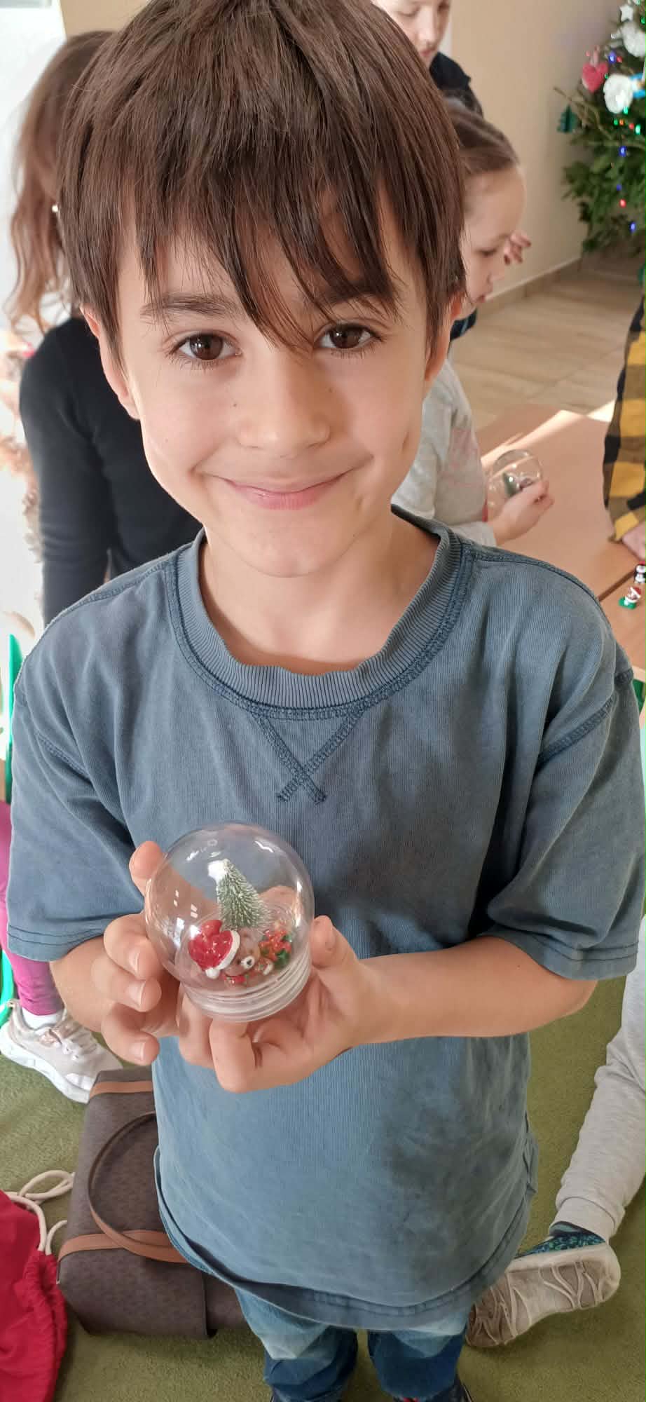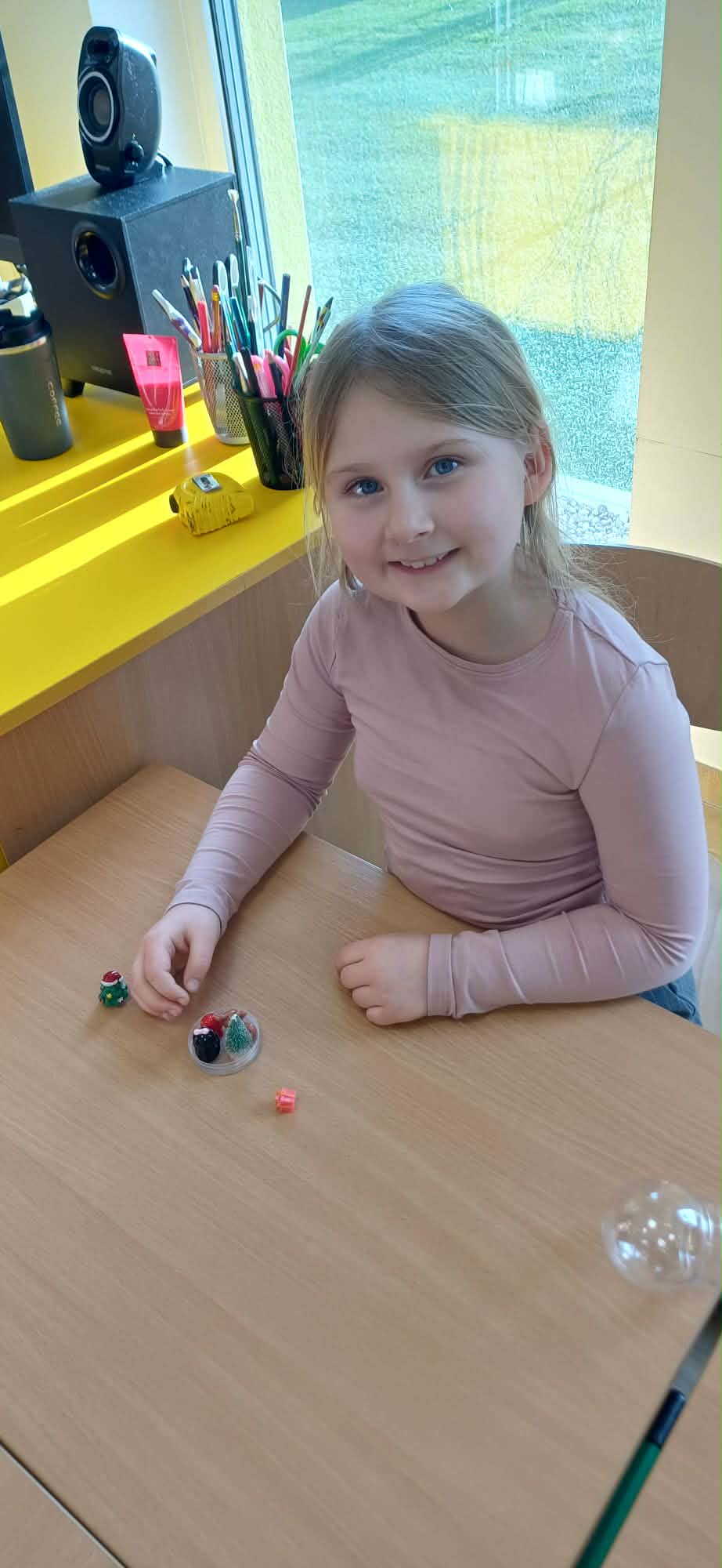 Zabawa była fantastyczna, a uśmiechy nie schodziły z twarzy dzieci. Warsztaty okazały się również wspaniałą lekcją kreatywności. Każdy uczeń mógł wykazać się pomysłowością, wybierając dekoracje, które miały ozdobić jego magiczną kulę. Do specjalnie przygotowanych pojemników trafiały kolorowe figurki, błyszczące gwiazdki i inne urocze dodatki.