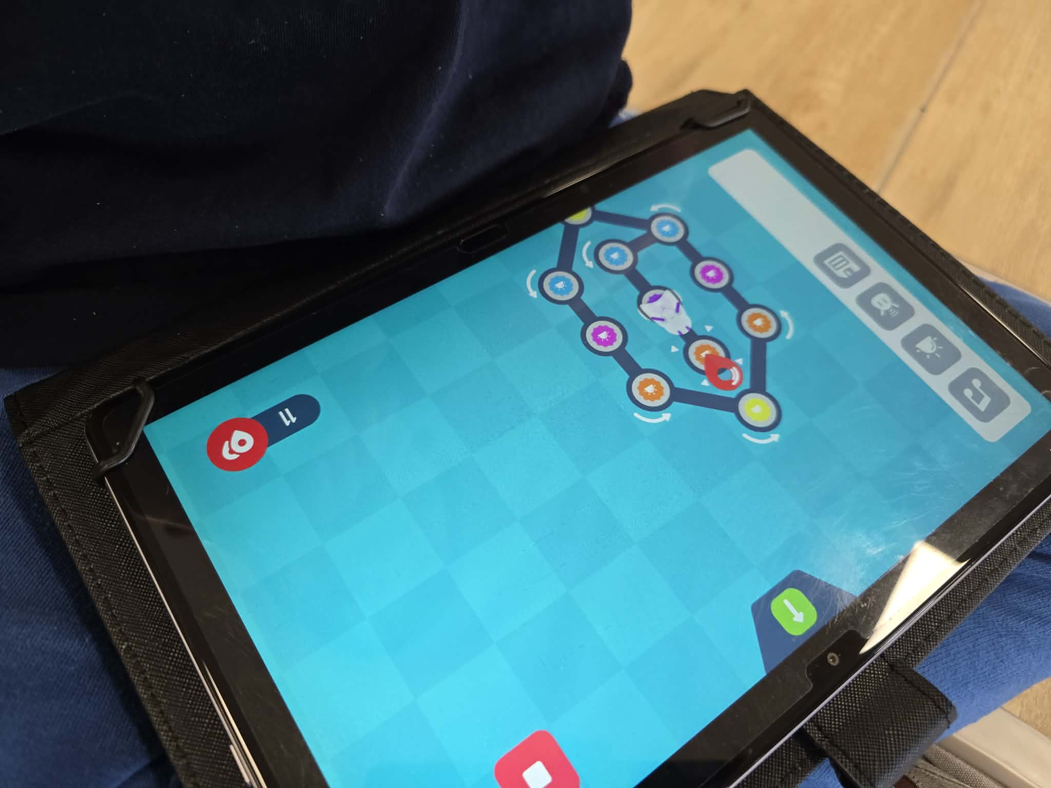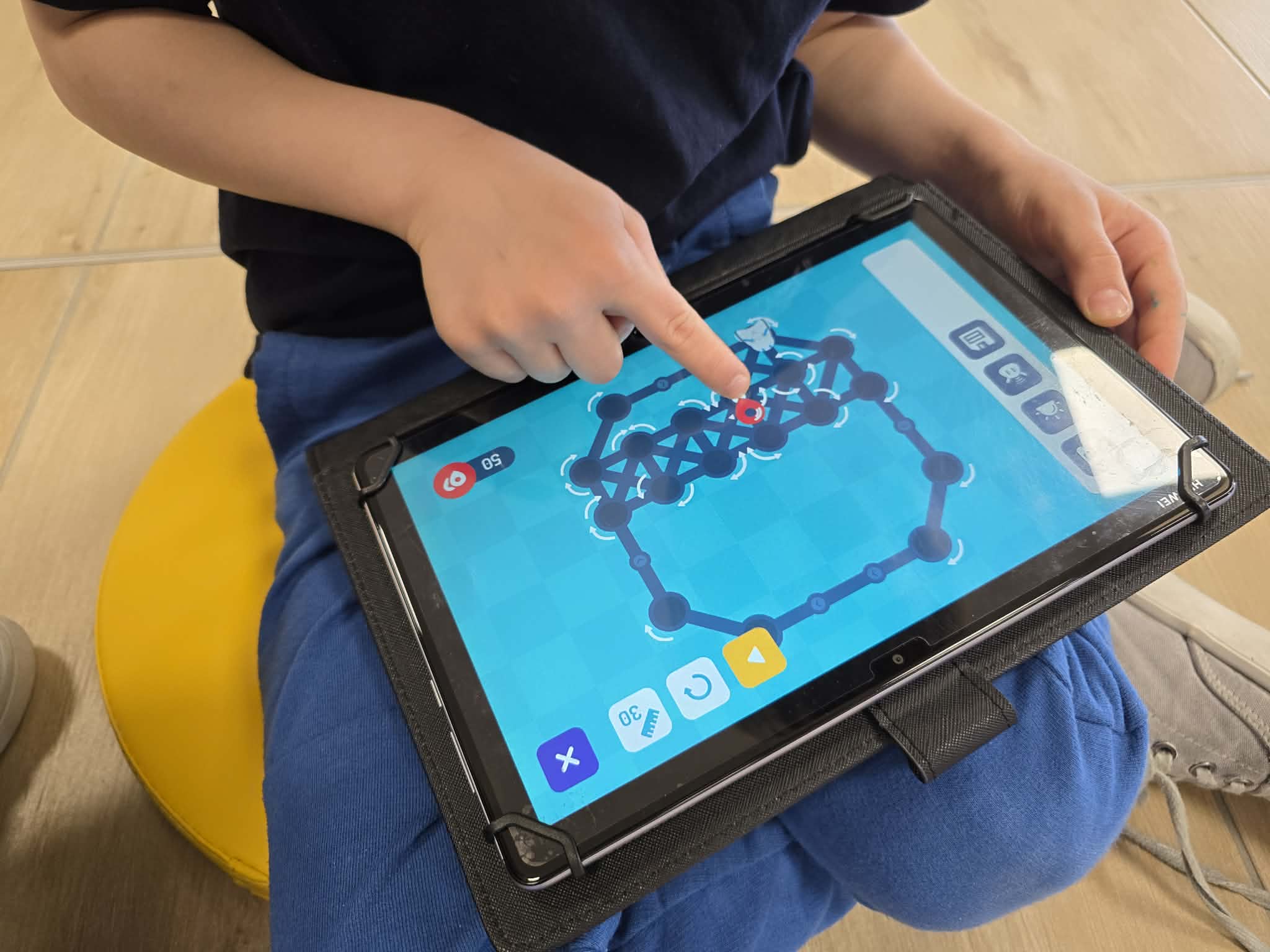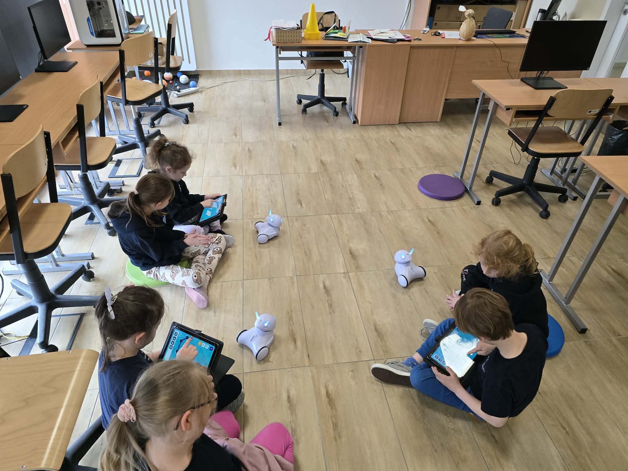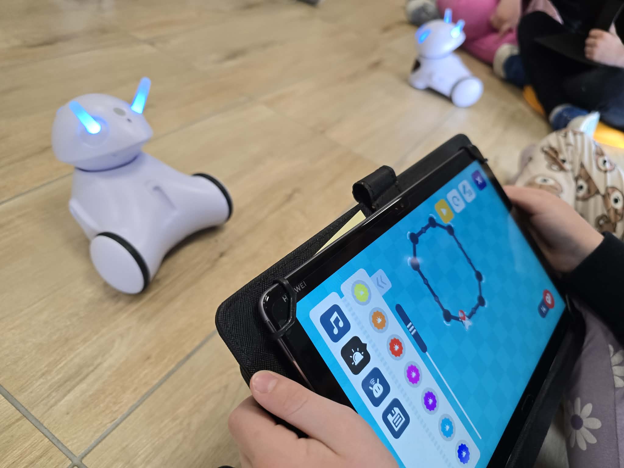Podczas zajęć dzieci korzystały z robotów Photon, które tym razem zamieniły się w prawdziwych pomocników artystycznych. Uczestnicy poznawali funkcje dedykowanej aplikacji, dzięki której mogli planować trasy ruchu robota. Każda zaprogramowana ścieżka przekładała się na rysunek tworzony przez robota. Dla wielu dzieci było to niezwykle ciekawe doświadczenie – obserwowanie, jak zaprogramowane polecenia zmieniają się w realne.