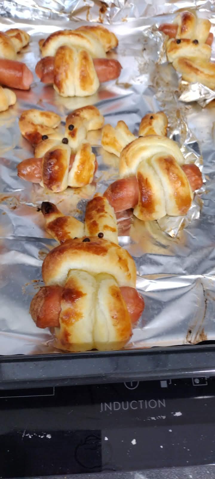 Po upieczeniu króliczki były złociste, chrupiące i gotowe do podania. Nadzienie z parówki sprawiło, że stanowiły pyszną przekąskę, idealną na świąteczne śniadanie lub jako mała ozdoba stołu. Ich wyjątkowy kształt wprowadził w szkolnych klasach i kuchni wiosenny, radosny klimat Wielkanocy.