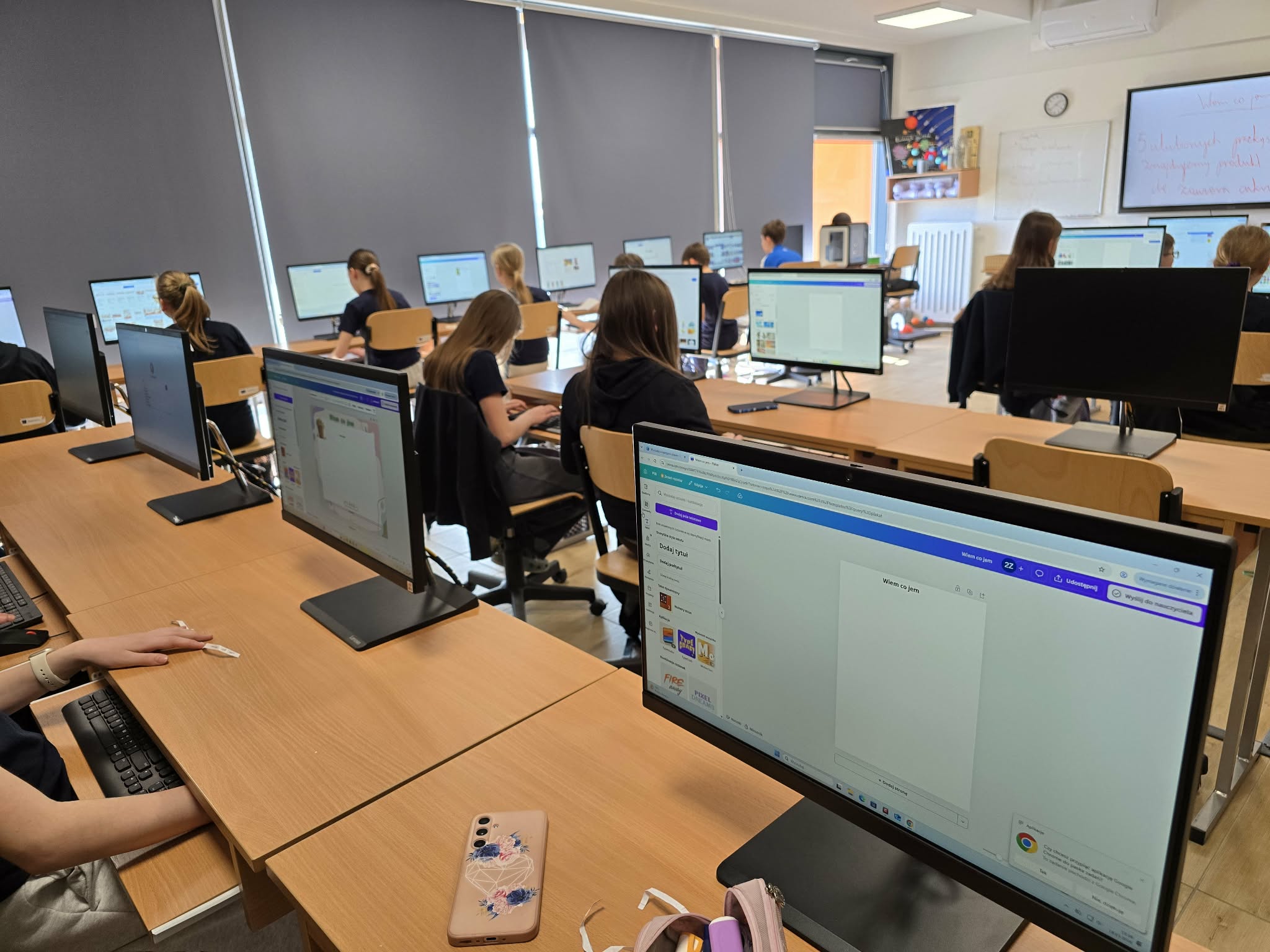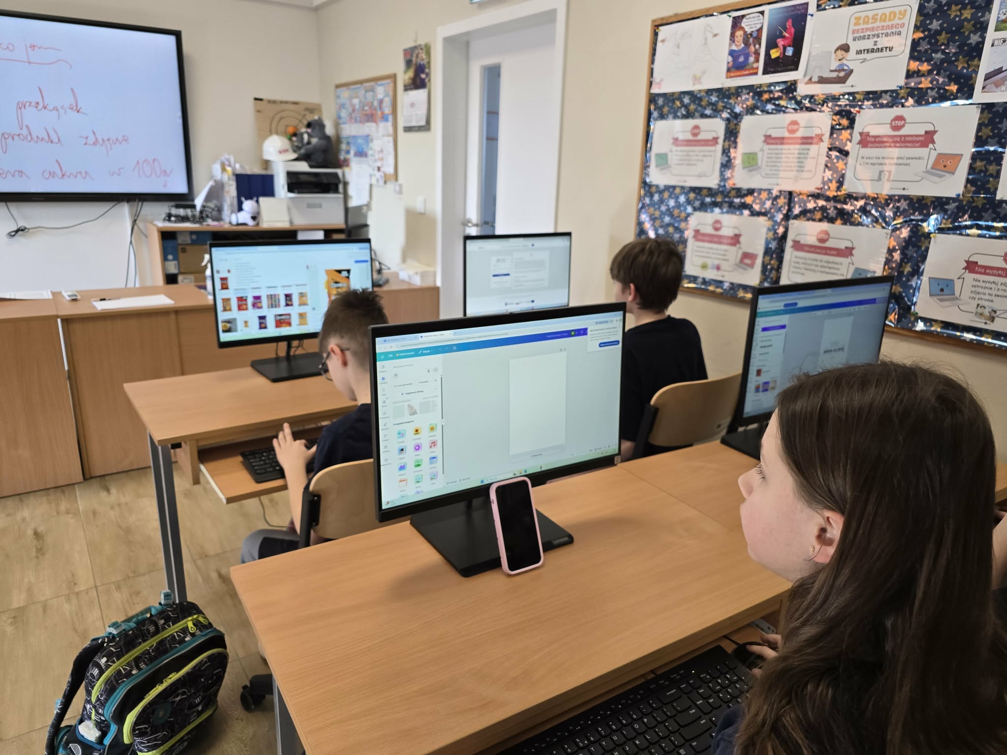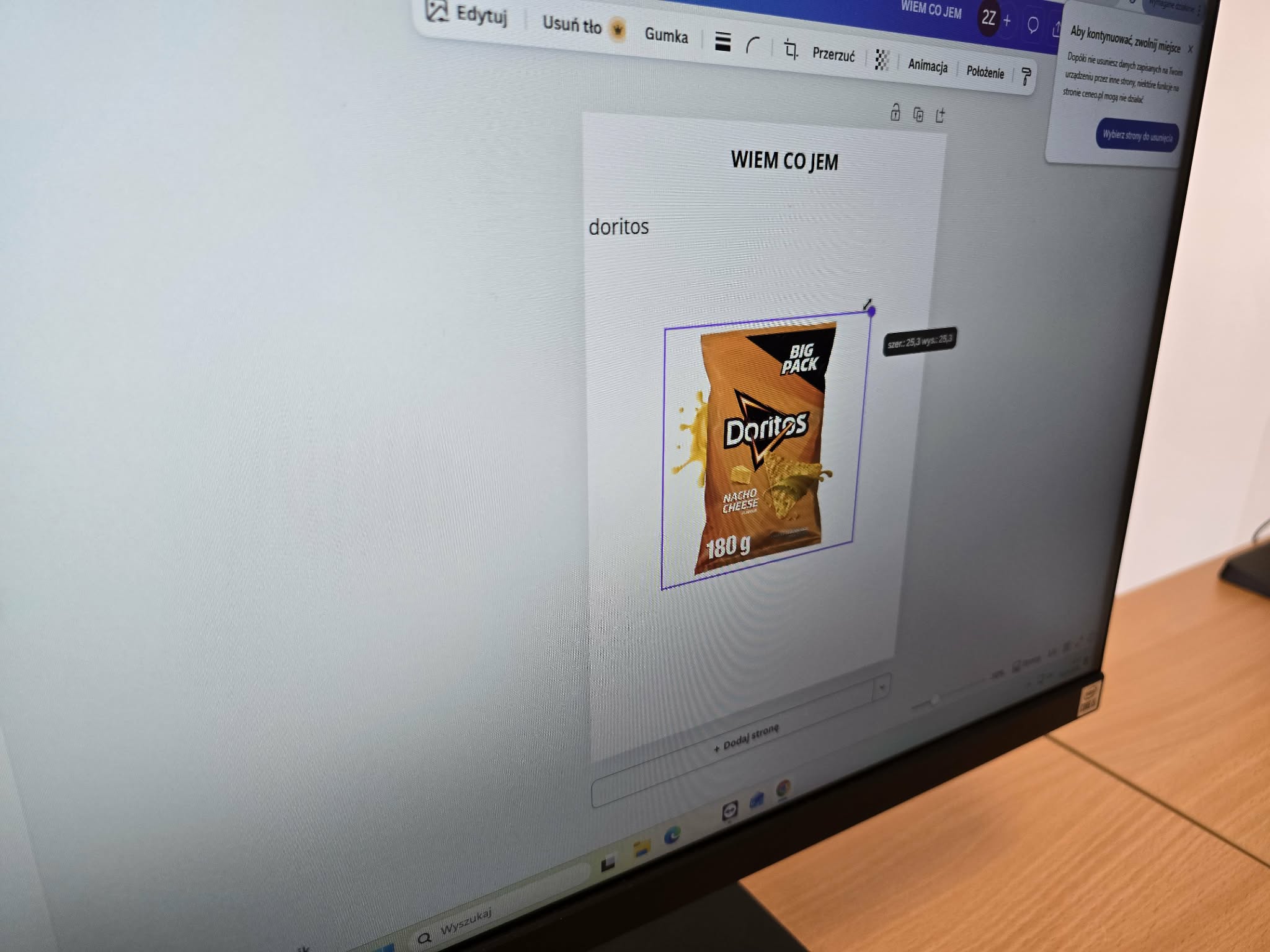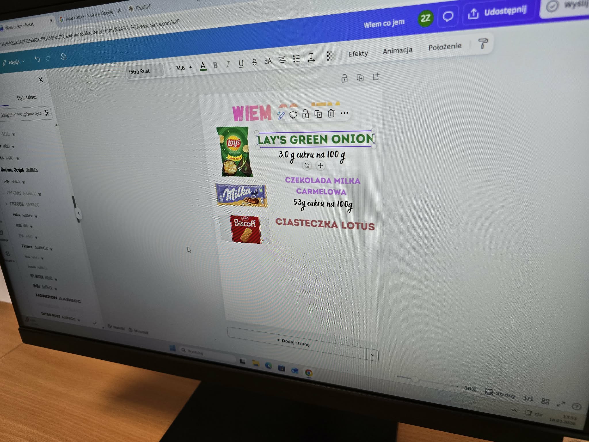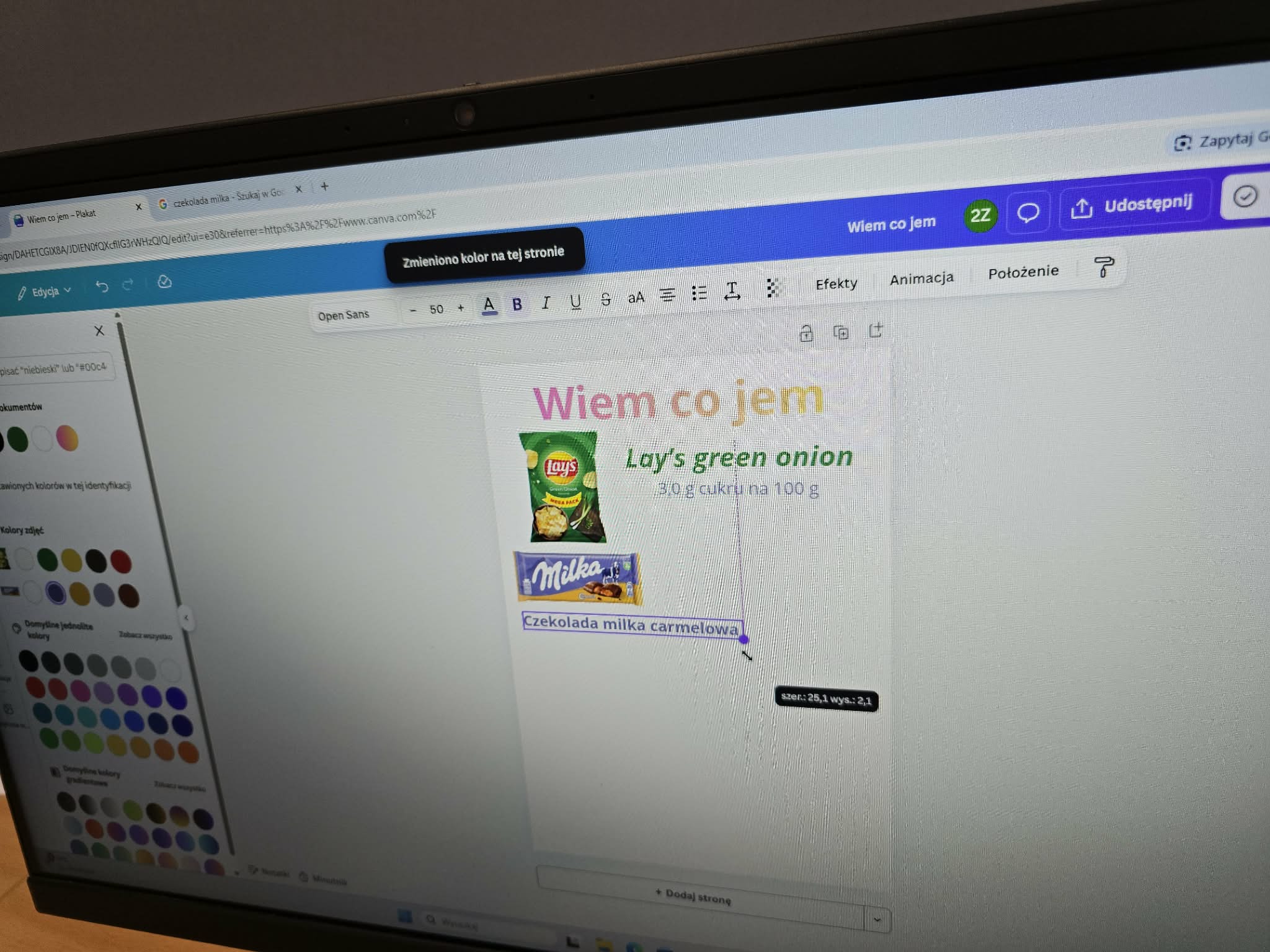 Zadanie polegało na sprawdzeniu i przedstawieniu, ile cukru znajduje się w popularnych przekąskach i napojach, po które często sięgają dzieci. Uczniowie analizowali etykiety produktów, wyszukiwali informacje i porównywali zawartość cukru w różnych artykułach spożywczych. Następnie w programach komputerowych tworzyli plakaty, na których w czytelny i ciekawy sposób prezentowali wyniki swoich obserwacji.