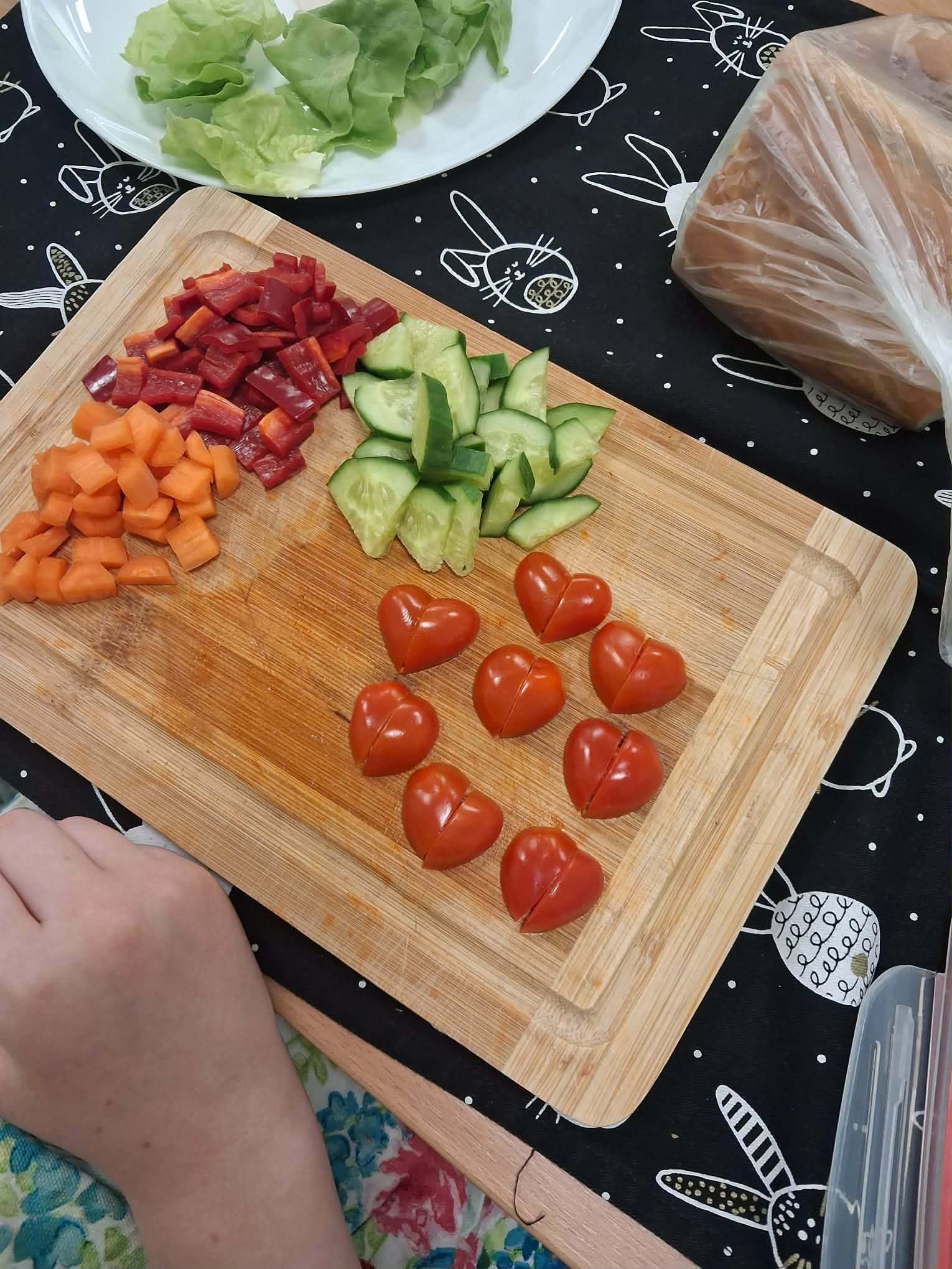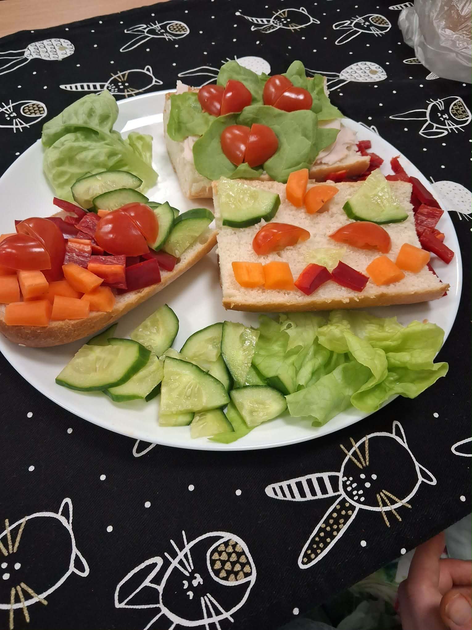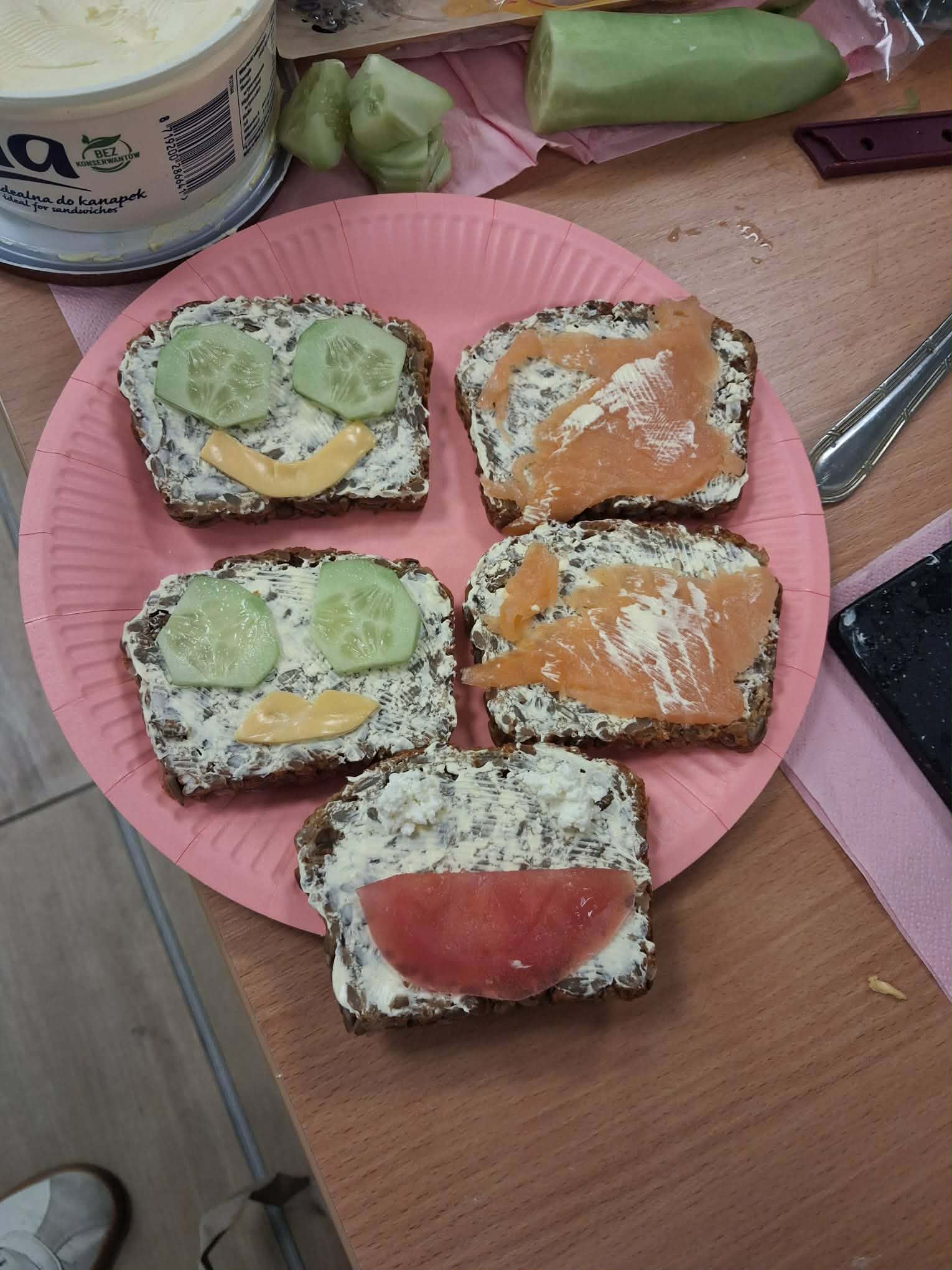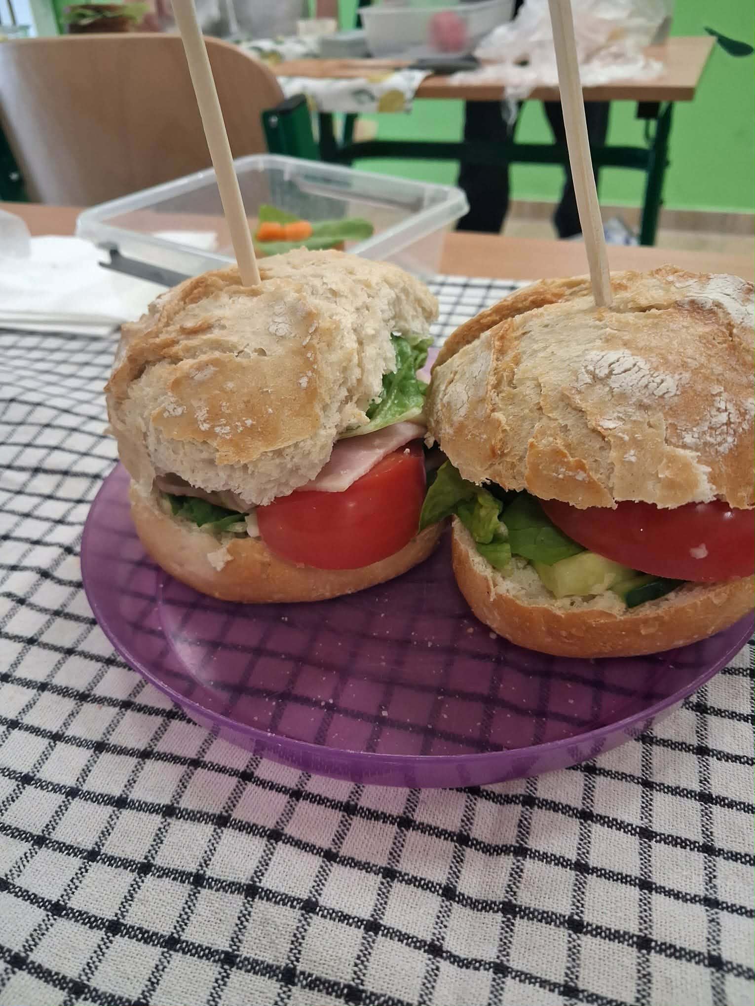 Najbardziej wyczekiwaną częścią zajęć było samodzielne przygotowanie wiosennych kanapek. Uczniowie wykorzystywali przyniesione produkty, dbając o ich estetyczne i zdrowe komponowanie. Praca przebiegała w miłej atmosferze, a efekty były nie tylko smaczne, ale i kolorowe.