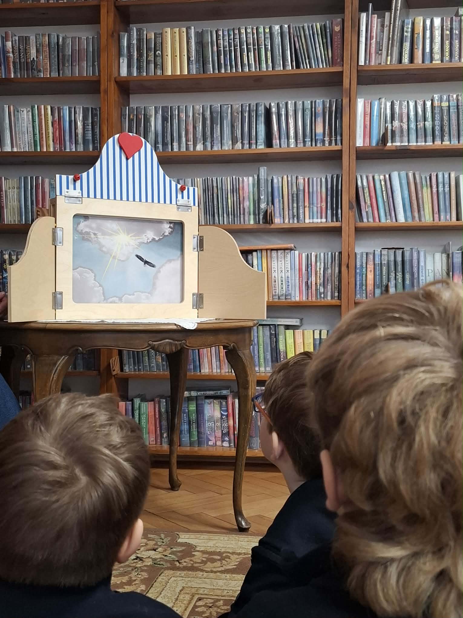 Spotkanie rozpoczęło się od obejrzenia barwnego teatrzyku Kashimbi, który w ciekawy i przystępny sposób opowiadał o Indianach, ich kulturze, zwyczajach oraz życiu dzieci mieszkających na tym niezwykłym kontynencie. Kolorowe postacie, muzyka oraz interesująca opowieść sprawiły, że mali widzowie z ogromnym zainteresowaniem śledzili losy bohaterów i z radością reagowali na kolejne wydarzenia przedstawienia.