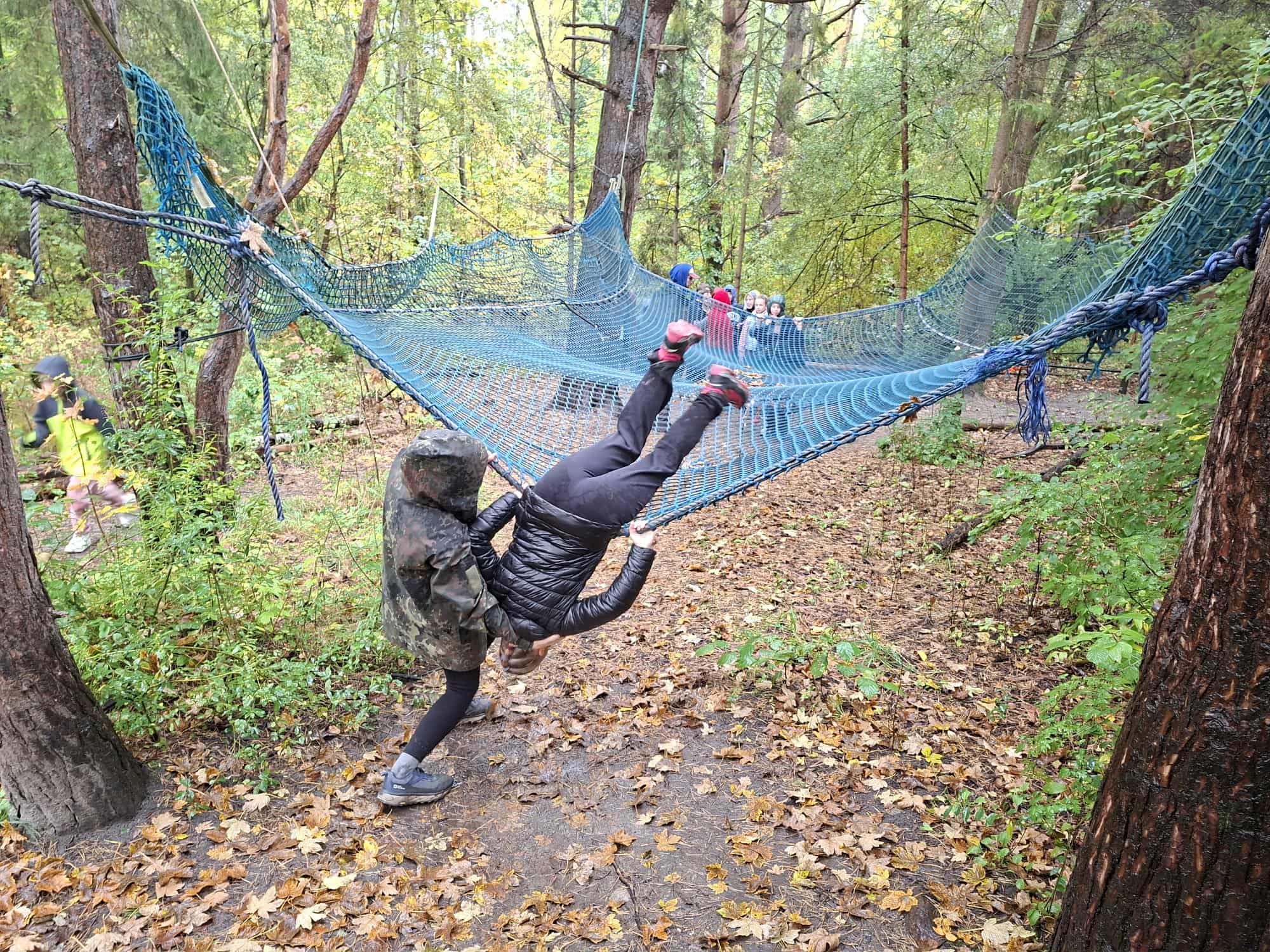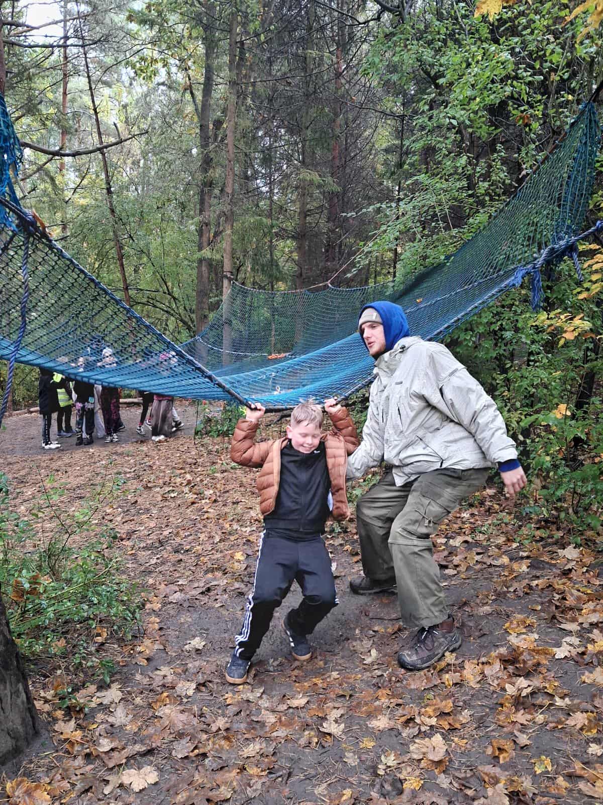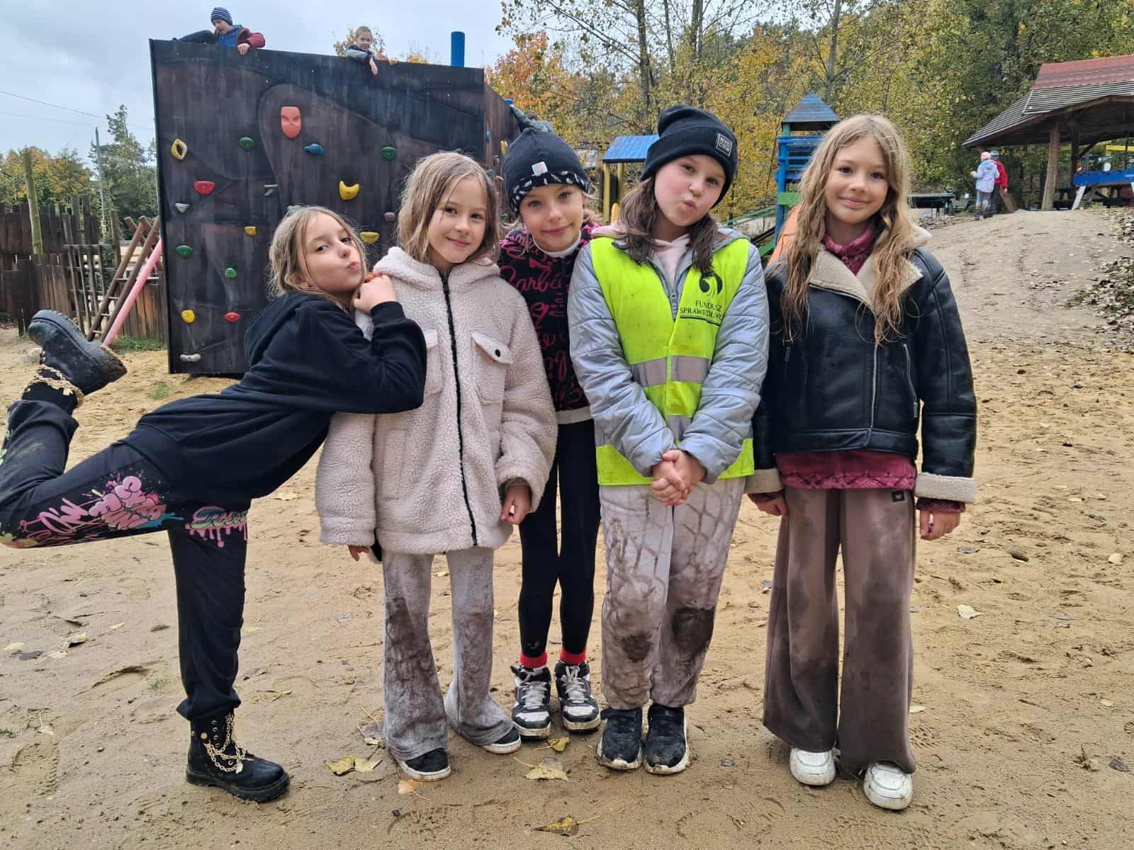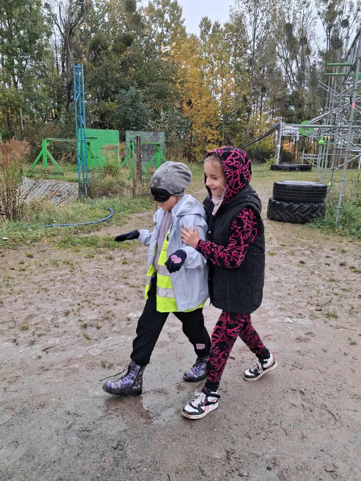 W piątek, klasy 3 i 4 wybrały się na wycieczkę do Parku Adventure w Gdyni Kolibkach. Już sama podróż była dla nas przygodą – wyruszyliśmy pociągiem, co dla wielu uczniów było miłą odmianą od codziennych dojazdów. W wagonach panowała radosna atmosfera: śmiech, rozmowy i wspólne podziwianie widoków za oknem sprawiły, że droga minęła nam bardzo szybko. Po dotarciu na miejsce powitał nas zespół instruktorów, którzy zaprosili nas do udziału w zabawie. Czekały na nas różnorodne zadania terenowe wymagające współpracy i zaangażowania, ucząc przy tym planowania, komunikacji i wzajemnego zaufania. Choć pogoda nie do końca nam sprzyjała – chwilami padał deszcz, a niebo było zasnute chmurami – nikt nie tracił dobrego humoru. Kurtki przeciwdeszczowe i szerokie uśmiechy wystarczyły, by nawet w kroplach deszczu znaleźć przyjemność ze wspólnej zabawy. Po intensywnych zajęciach przyszedł czas na krótki odpoczynek, ognisko, ciepłą herbatę i wspólne rozmowy pod wiatą. Pełni wrażeń i nowych doświadczeń wróciliśmy do szkoły, nieco zmęczeni, ale zadowoleni. Ta wycieczka pokazała nam, że nawet deszczowa pogoda nie jest w stanie popsuć dobrej zabawy, jeśli towarzyszy jej świetna ekipa i duch przygody!