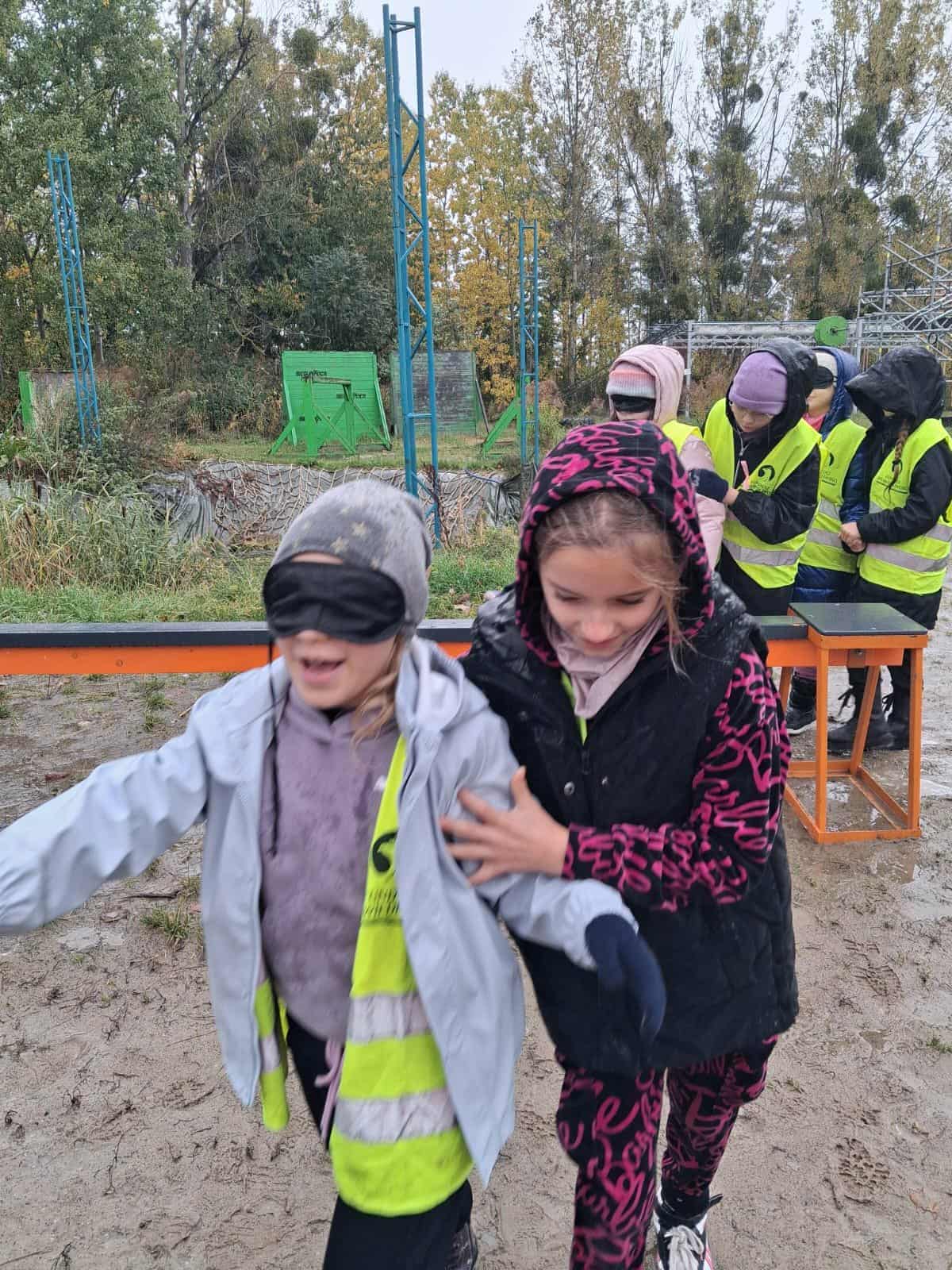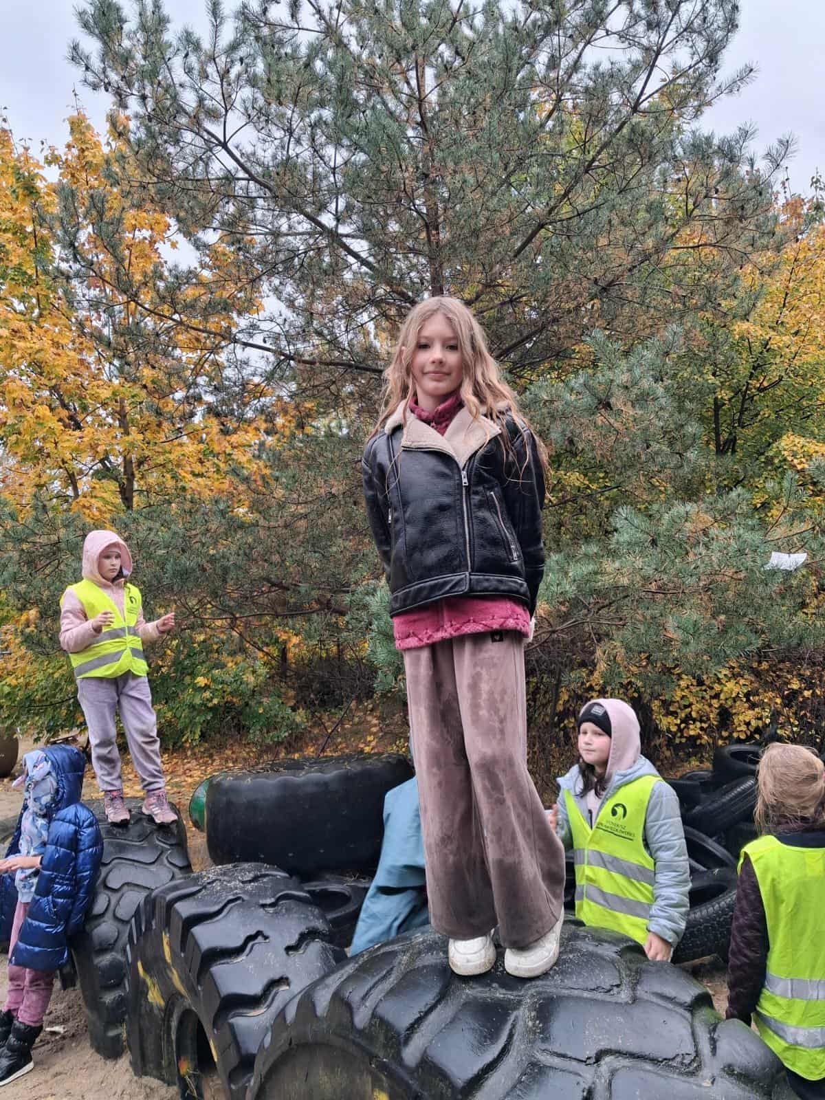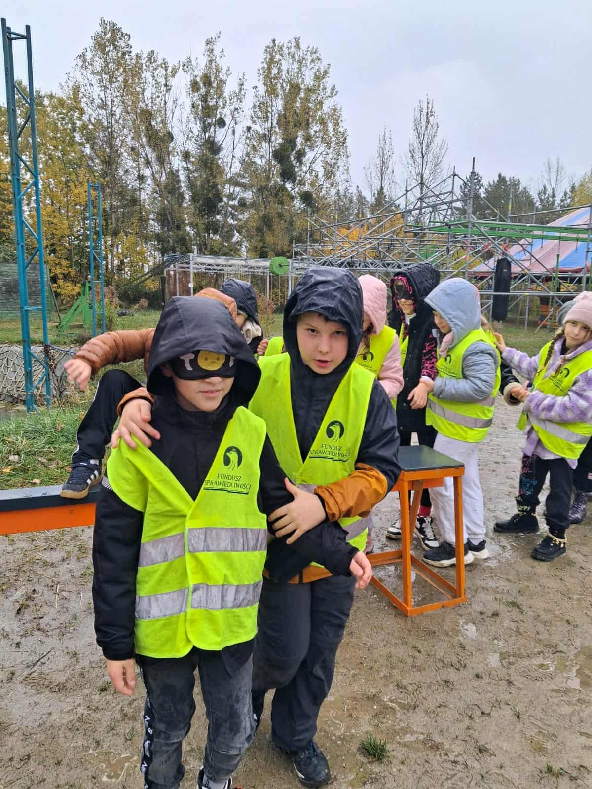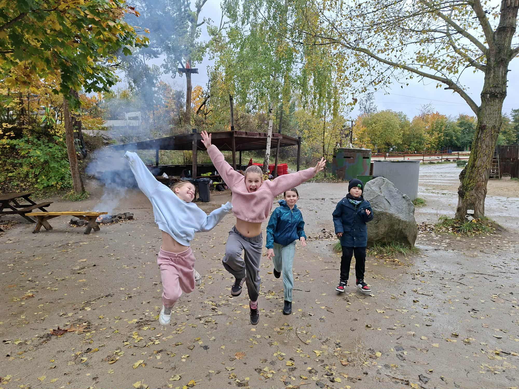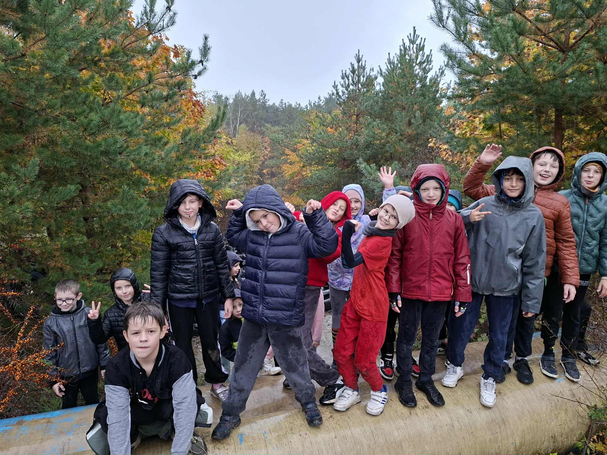 W piątek, klasy 3 i 4 wybrały się na wycieczkę do Parku Adventure w Gdyni Kolibkach. Już sama podróż była dla nas przygodą – wyruszyliśmy pociągiem, co dla wielu uczniów było miłą odmianą od codziennych dojazdów. W wagonach panowała radosna atmosfera: śmiech, rozmowy i wspólne podziwianie widoków za oknem sprawiły, że droga minęła nam bardzo szybko. Po dotarciu na miejsce powitał nas zespół instruktorów, którzy zaprosili nas do udziału w zabawie. Czekały na nas różnorodne zadania terenowe wymagające współpracy i zaangażowania, ucząc przy tym planowania, komunikacji i wzajemnego zaufania. Choć pogoda nie do końca nam sprzyjała – chwilami padał deszcz, a niebo było zasnute chmurami – nikt nie tracił dobrego humoru. Kurtki przeciwdeszczowe i szerokie uśmiechy wystarczyły, by nawet w kroplach deszczu znaleźć przyjemność ze wspólnej zabawy. Po intensywnych zajęciach przyszedł czas na krótki odpoczynek, ognisko, ciepłą herbatę i wspólne rozmowy pod wiatą. Pełni wrażeń i nowych doświadczeń wróciliśmy do szkoły, nieco zmęczeni, ale zadowoleni. Ta wycieczka pokazała nam, że nawet deszczowa pogoda nie jest w stanie popsuć dobrej zabawy, jeśli towarzyszy jej świetna ekipa i duch przygody!