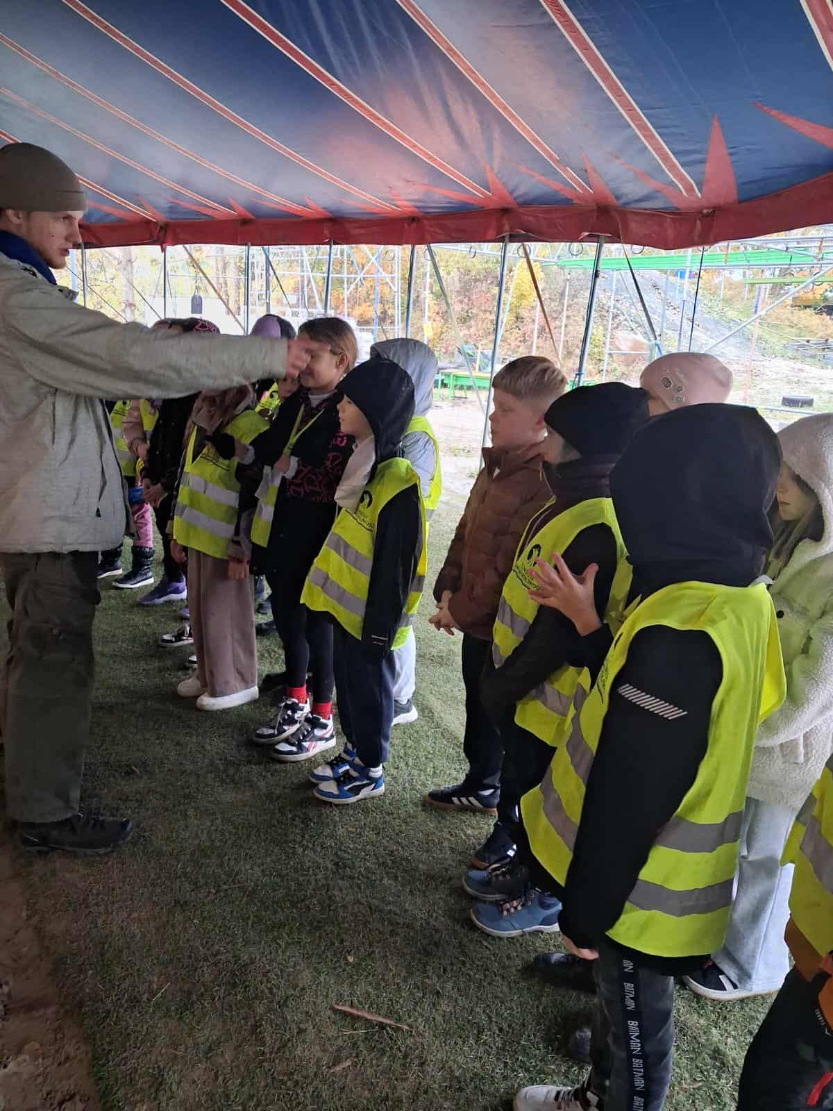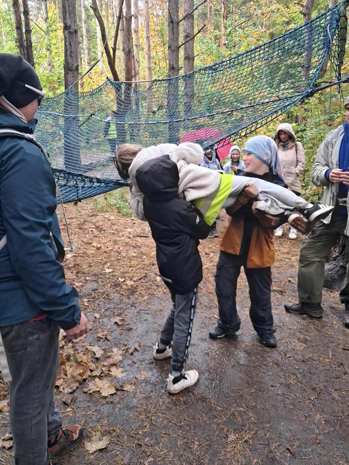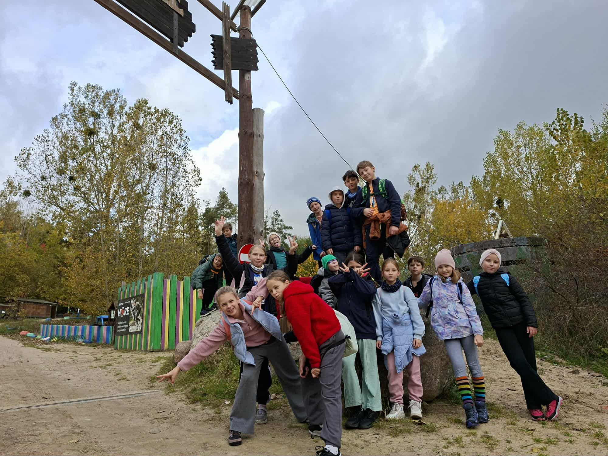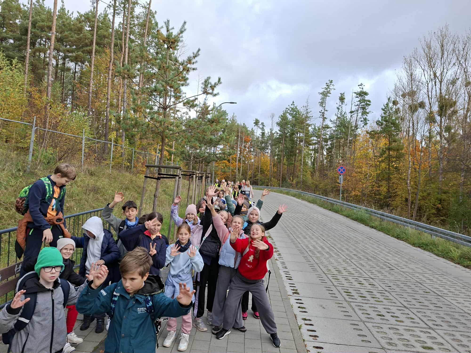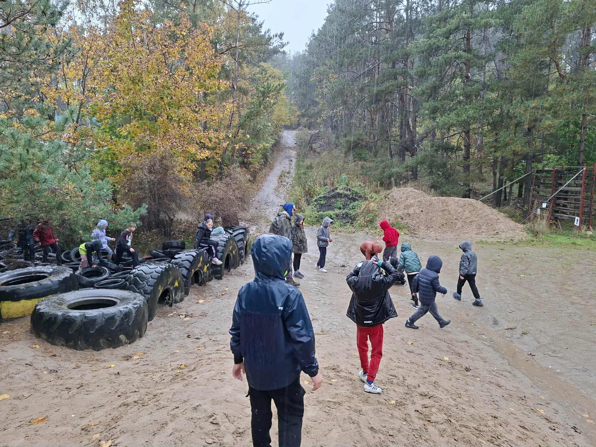 W piątek, klasy 3 i 4 wybrały się na wycieczkę do Parku Adventure w Gdyni Kolibkach. Już sama podróż była dla nas przygodą – wyruszyliśmy pociągiem, co dla wielu uczniów było miłą odmianą od codziennych dojazdów. W wagonach panowała radosna atmosfera: śmiech, rozmowy i wspólne podziwianie widoków za oknem sprawiły, że droga minęła nam bardzo szybko. Po dotarciu na miejsce powitał nas zespół instruktorów, którzy zaprosili nas do udziału w zabawie. Czekały na nas różnorodne zadania terenowe wymagające współpracy i zaangażowania, ucząc przy tym planowania, komunikacji i wzajemnego zaufania. Choć pogoda nie do końca nam sprzyjała – chwilami padał deszcz, a niebo było zasnute chmurami – nikt nie tracił dobrego humoru. Kurtki przeciwdeszczowe i szerokie uśmiechy wystarczyły, by nawet w kroplach deszczu znaleźć przyjemność ze wspólnej zabawy. Po intensywnych zajęciach przyszedł czas na krótki odpoczynek, ognisko, ciepłą herbatę i wspólne rozmowy pod wiatą. Pełni wrażeń i nowych doświadczeń wróciliśmy do szkoły, nieco zmęczeni, ale zadowoleni. Ta wycieczka pokazała nam, że nawet deszczowa pogoda nie jest w stanie popsuć dobrej zabawy, jeśli towarzyszy jej świetna ekipa i duch przygody!