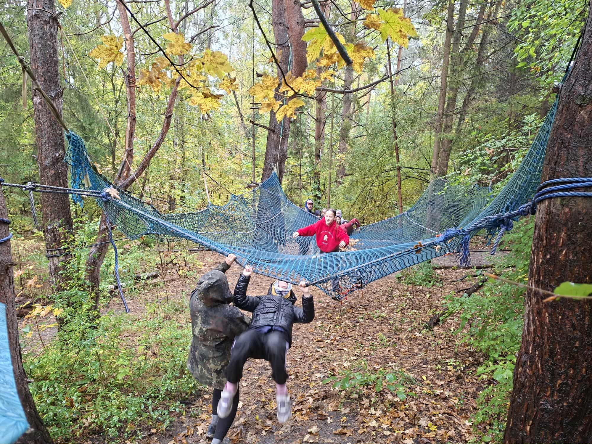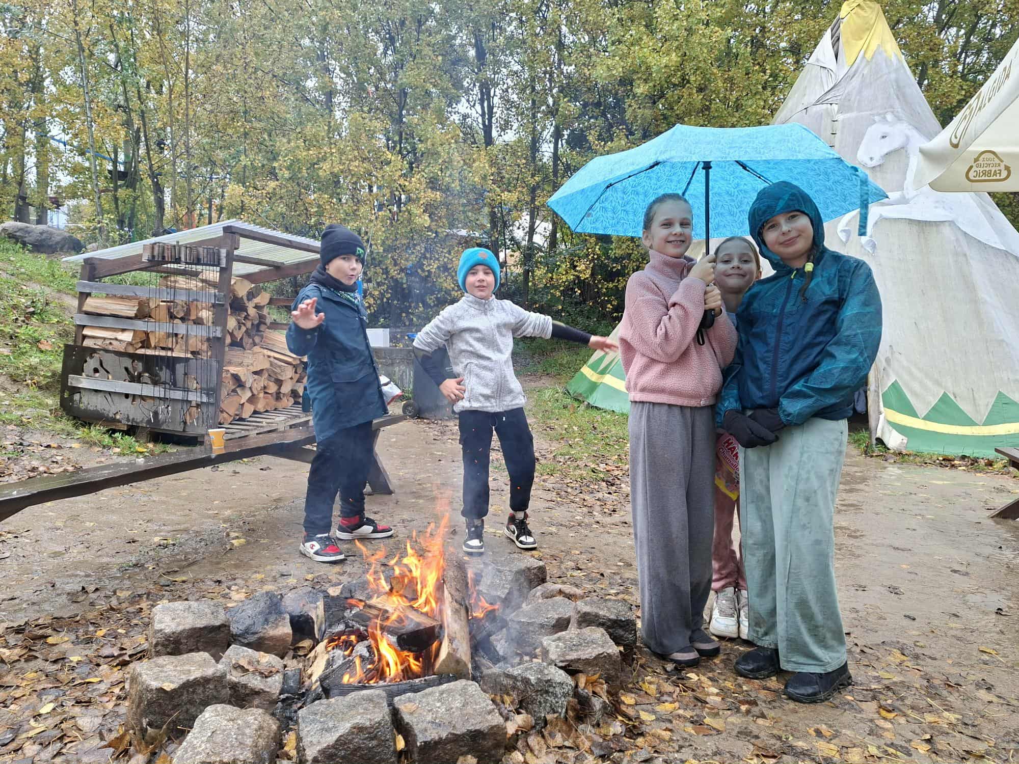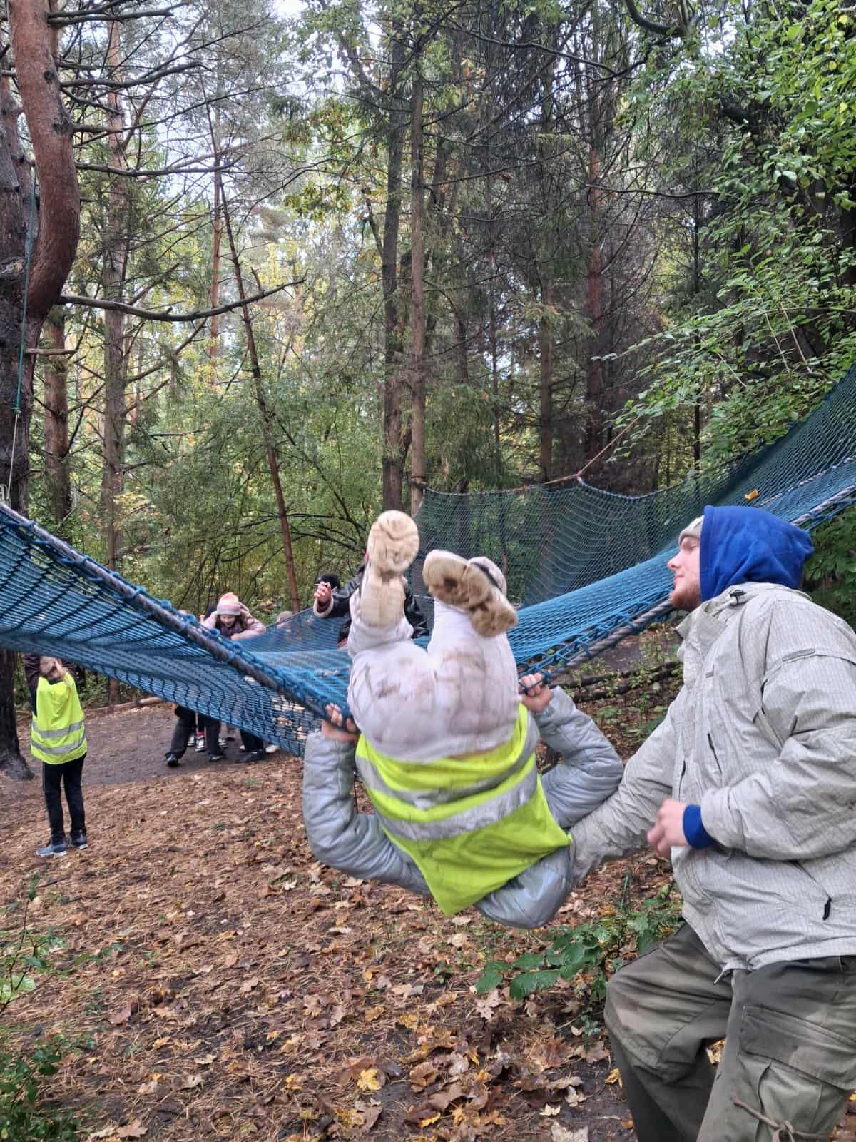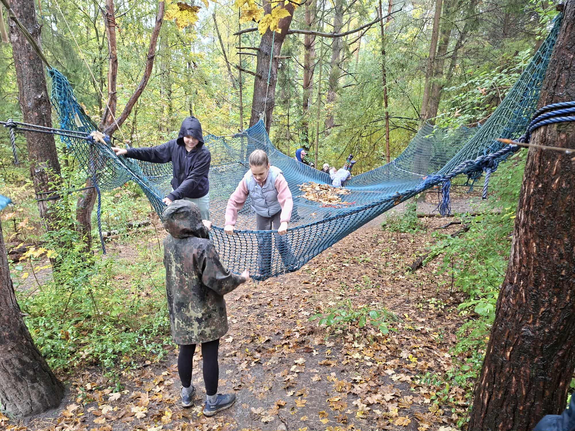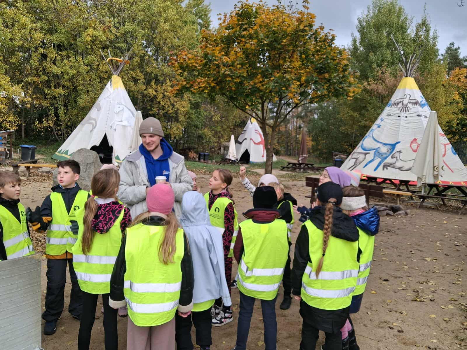 W piątek, klasy 3 i 4 wybrały się na wycieczkę do Parku Adventure w Gdyni Kolibkach. Już sama podróż była dla nas przygodą – wyruszyliśmy pociągiem, co dla wielu uczniów było miłą odmianą od codziennych dojazdów. W wagonach panowała radosna atmosfera: śmiech, rozmowy i wspólne podziwianie widoków za oknem sprawiły, że droga minęła nam bardzo szybko. Po dotarciu na miejsce powitał nas zespół instruktorów, którzy zaprosili nas do udziału w zabawie. Czekały na nas różnorodne zadania terenowe wymagające współpracy i zaangażowania, ucząc przy tym planowania, komunikacji i wzajemnego zaufania. Choć pogoda nie do końca nam sprzyjała – chwilami padał deszcz, a niebo było zasnute chmurami – nikt nie tracił dobrego humoru. Kurtki przeciwdeszczowe i szerokie uśmiechy wystarczyły, by nawet w kroplach deszczu znaleźć przyjemność ze wspólnej zabawy. Po intensywnych zajęciach przyszedł czas na krótki odpoczynek, ognisko, ciepłą herbatę i wspólne rozmowy pod wiatą. Pełni wrażeń i nowych doświadczeń wróciliśmy do szkoły, nieco zmęczeni, ale zadowoleni. Ta wycieczka pokazała nam, że nawet deszczowa pogoda nie jest w stanie popsuć dobrej zabawy, jeśli towarzyszy jej świetna ekipa i duch przygody!