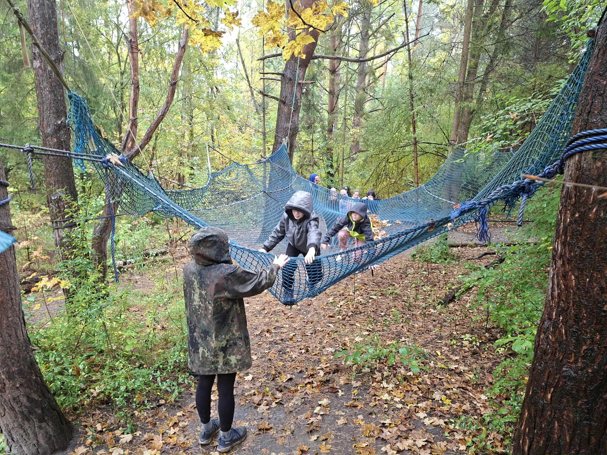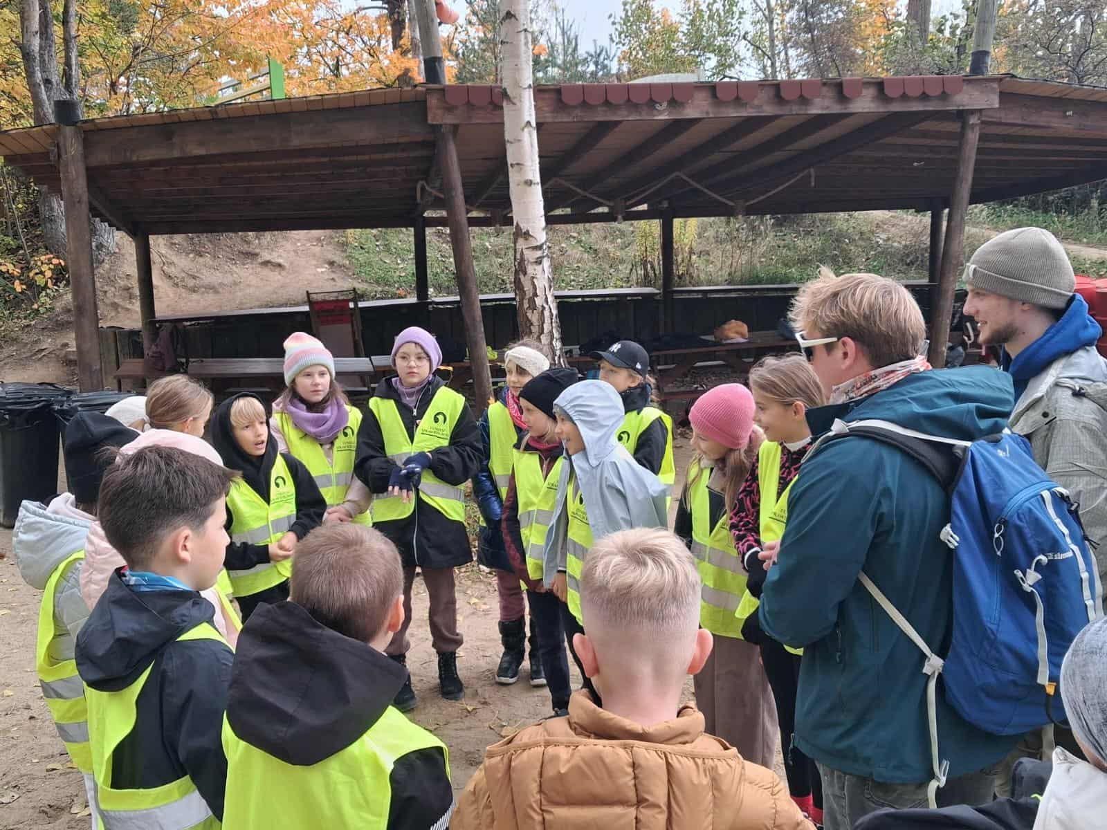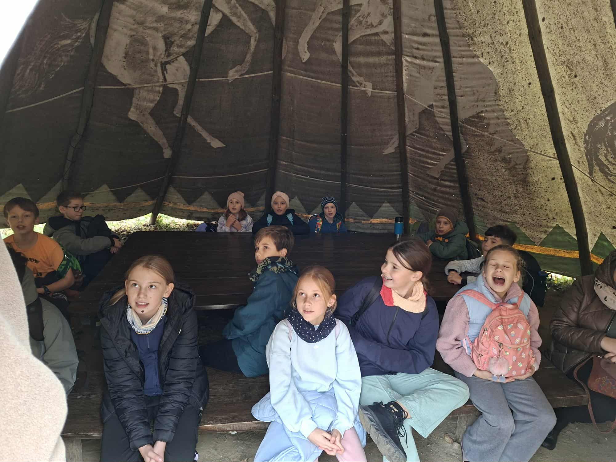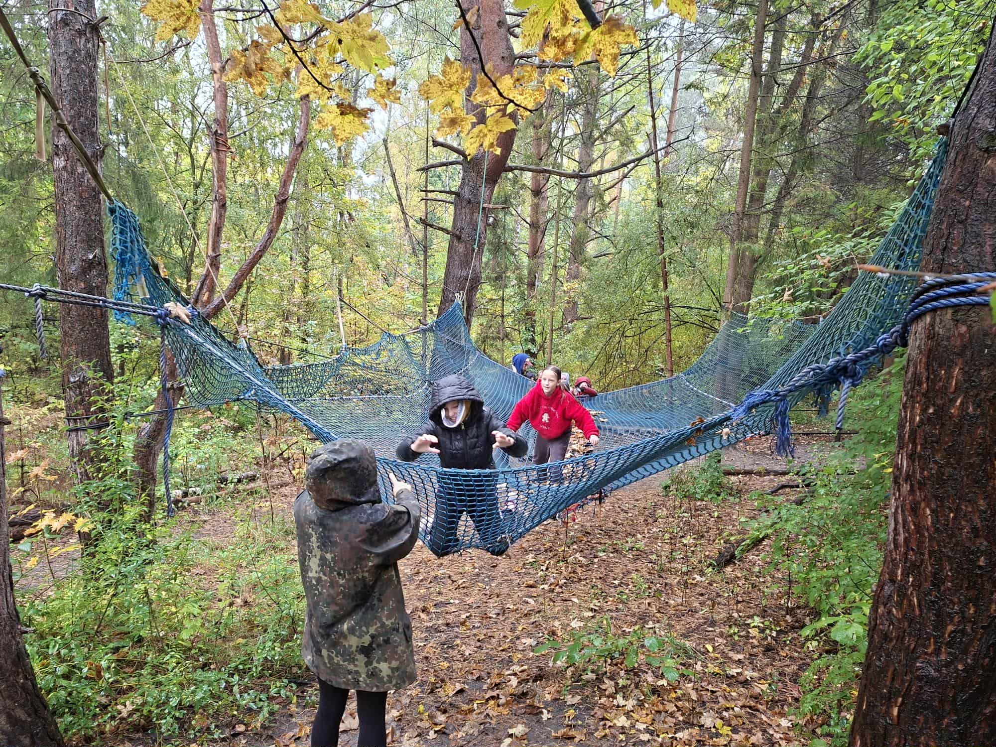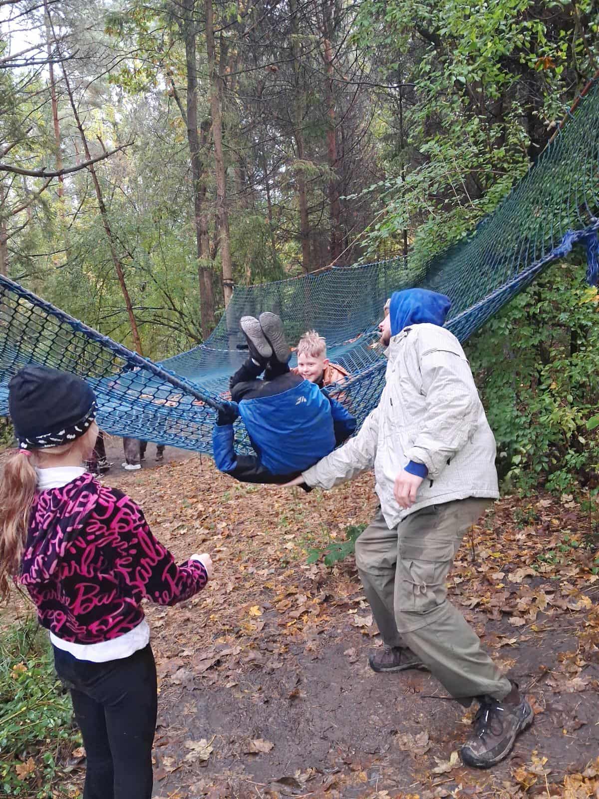 W piątek, klasy 3 i 4 wybrały się na wycieczkę do Parku Adventure w Gdyni Kolibkach. Już sama podróż była dla nas przygodą – wyruszyliśmy pociągiem, co dla wielu uczniów było miłą odmianą od codziennych dojazdów. W wagonach panowała radosna atmosfera: śmiech, rozmowy i wspólne podziwianie widoków za oknem sprawiły, że droga minęła nam bardzo szybko. Po dotarciu na miejsce powitał nas zespół instruktorów, którzy zaprosili nas do udziału w zabawie. Czekały na nas różnorodne zadania terenowe wymagające współpracy i zaangażowania, ucząc przy tym planowania, komunikacji i wzajemnego zaufania. Choć pogoda nie do końca nam sprzyjała – chwilami padał deszcz, a niebo było zasnute chmurami – nikt nie tracił dobrego humoru. Kurtki przeciwdeszczowe i szerokie uśmiechy wystarczyły, by nawet w kroplach deszczu znaleźć przyjemność ze wspólnej zabawy. Po intensywnych zajęciach przyszedł czas na krótki odpoczynek, ognisko, ciepłą herbatę i wspólne rozmowy pod wiatą. Pełni wrażeń i nowych doświadczeń wróciliśmy do szkoły, nieco zmęczeni, ale zadowoleni. Ta wycieczka pokazała nam, że nawet deszczowa pogoda nie jest w stanie popsuć dobrej zabawy, jeśli towarzyszy jej świetna ekipa i duch przygody!