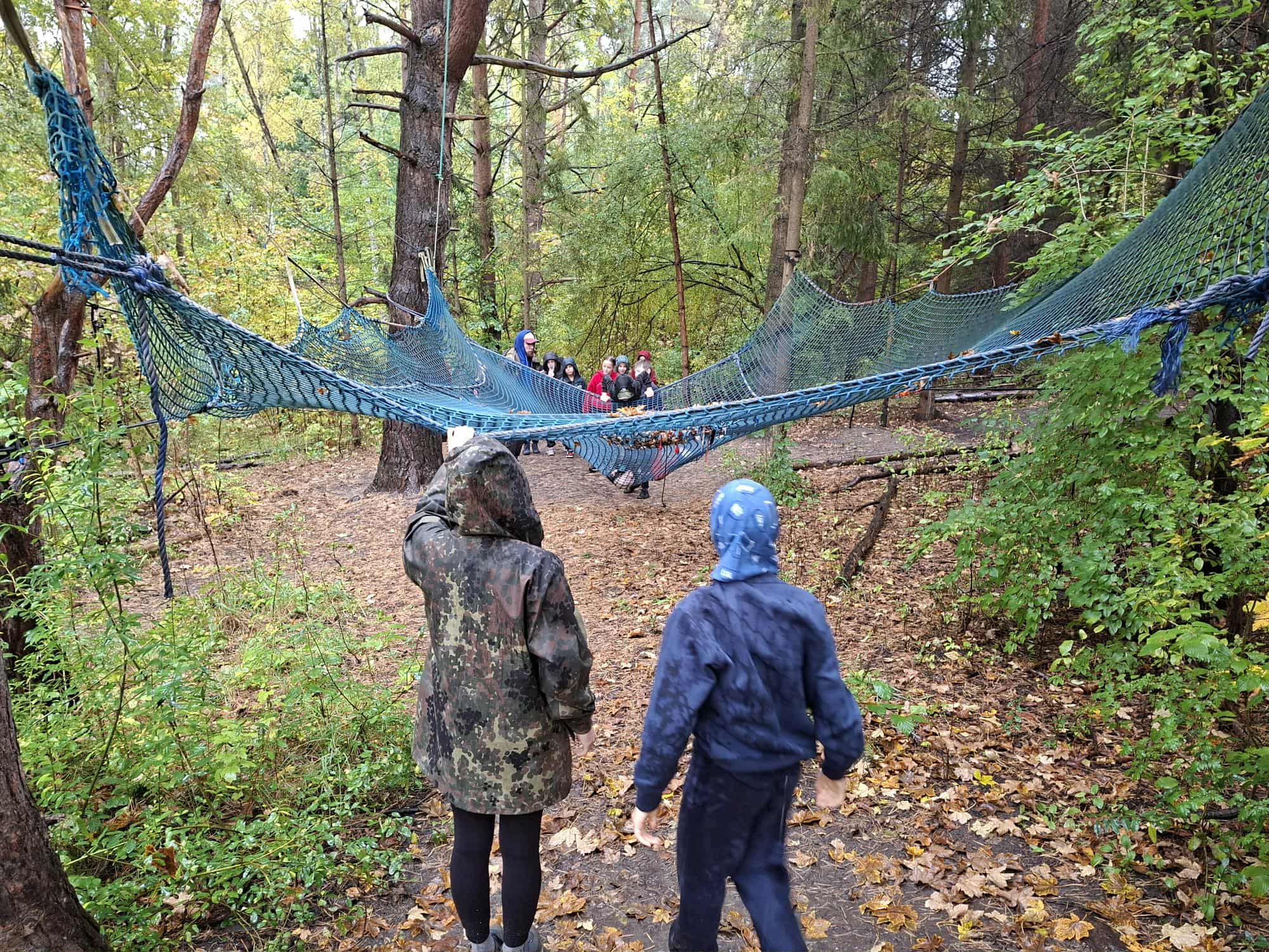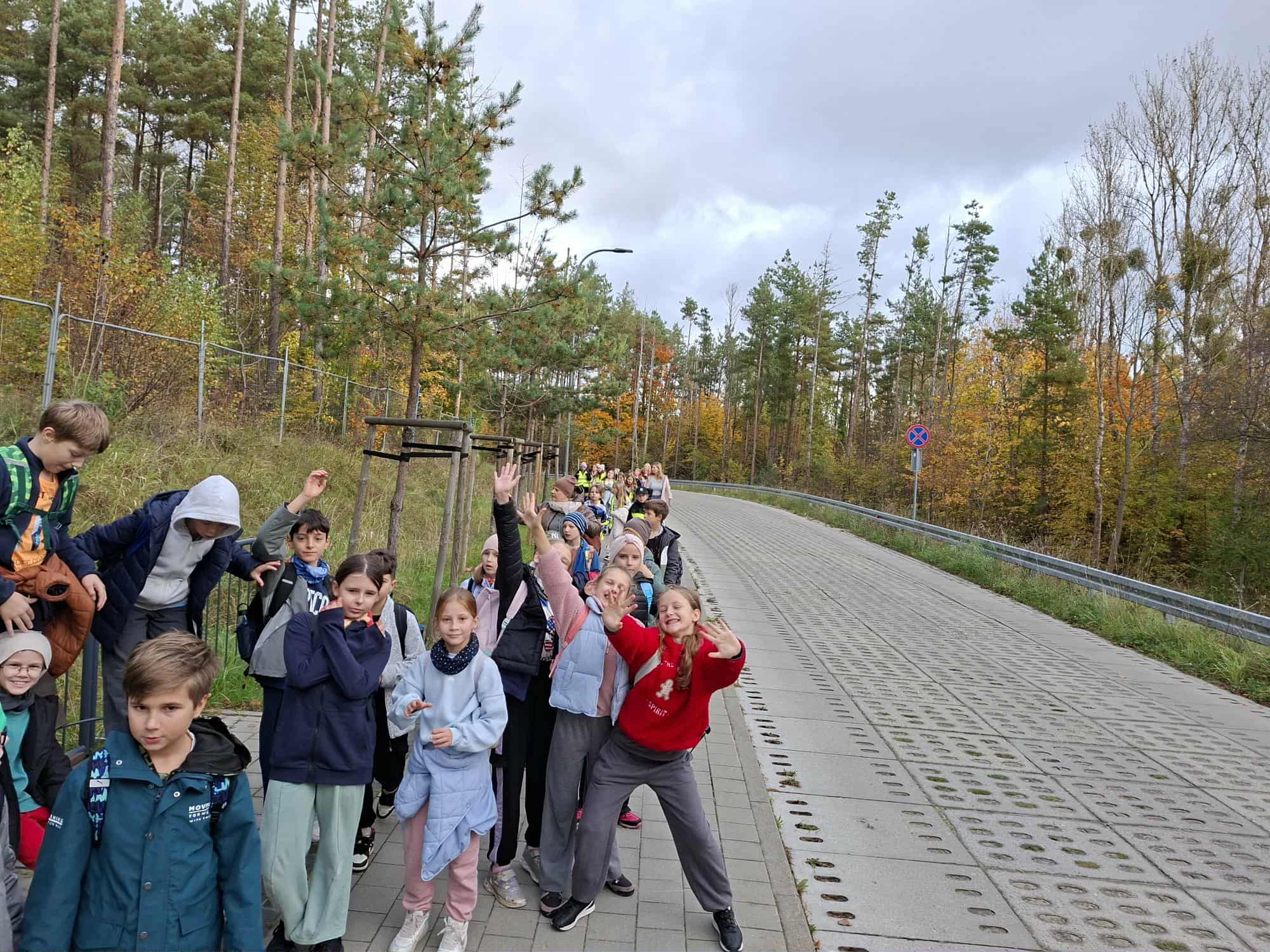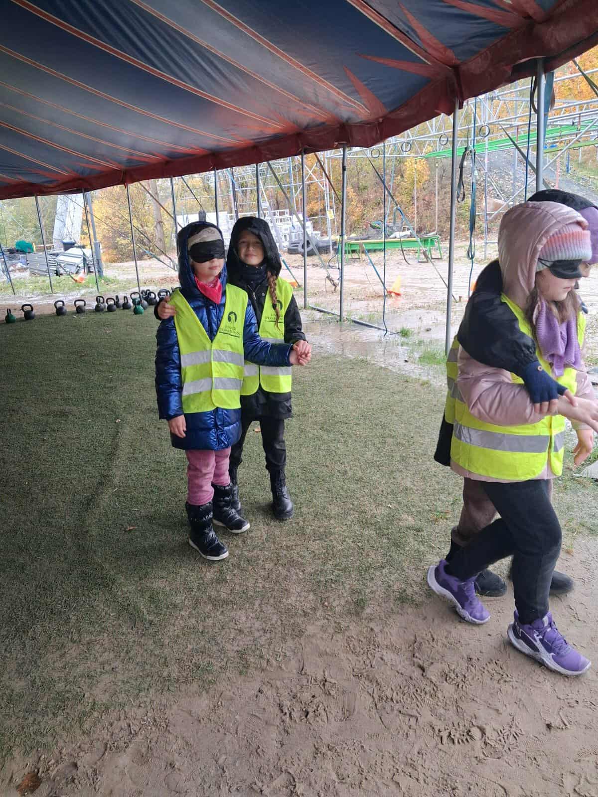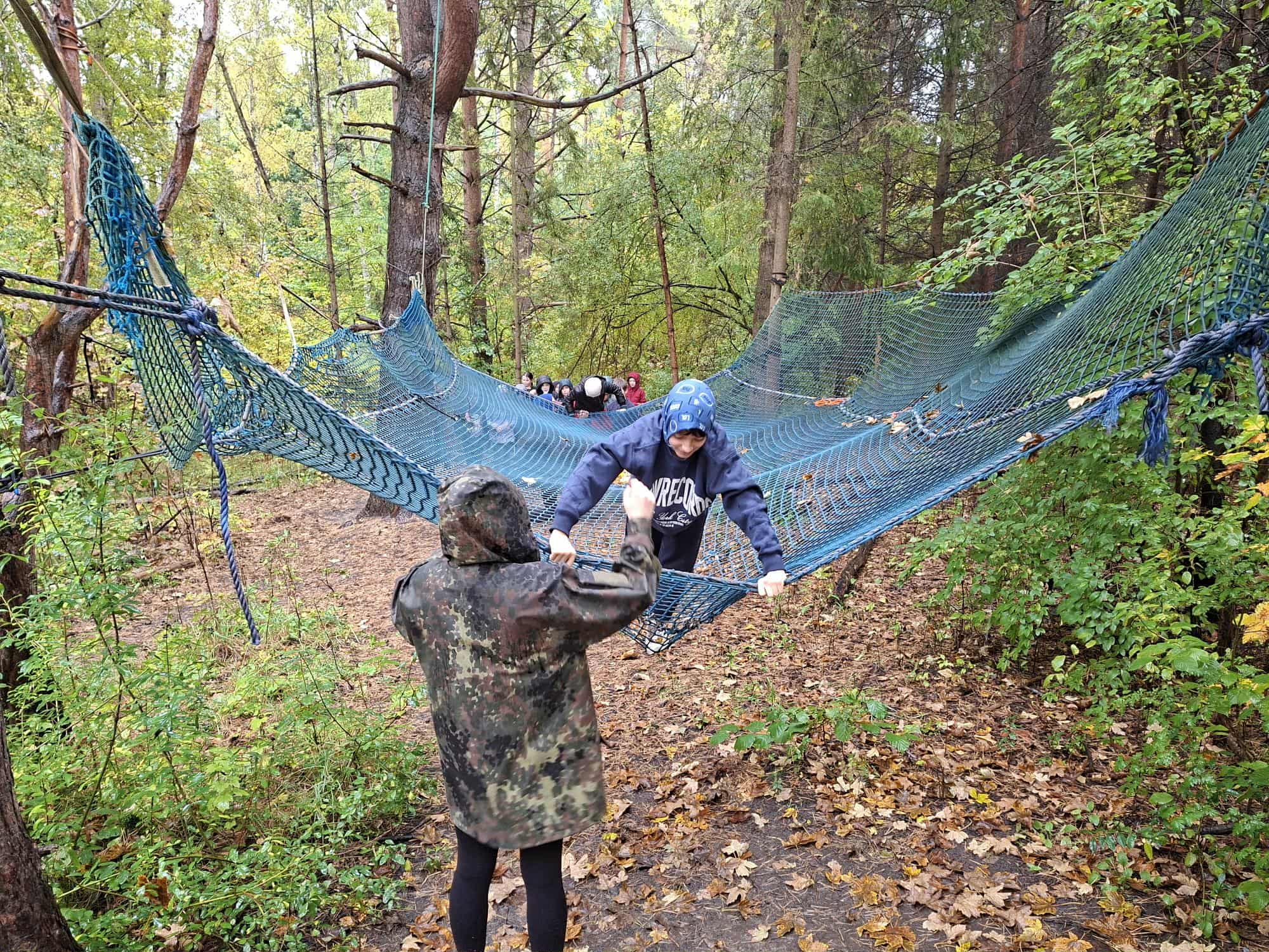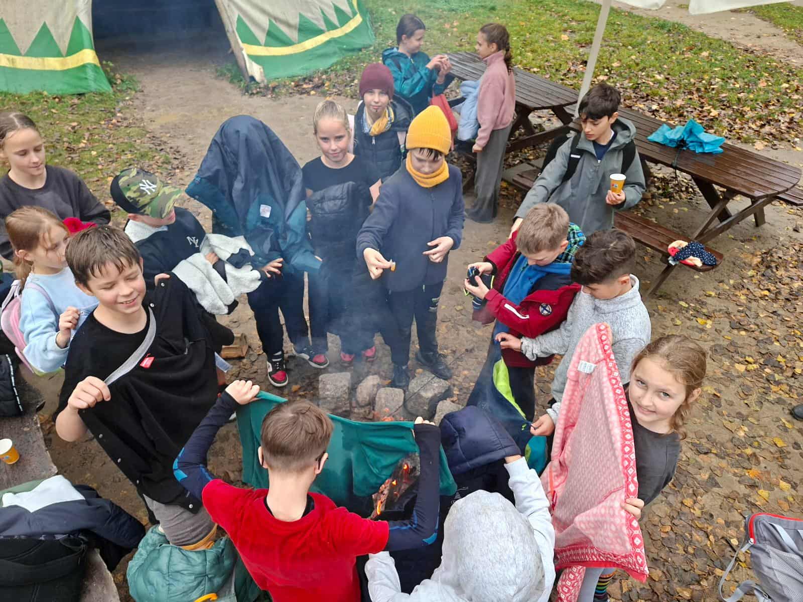 W piątek, klasy 3 i 4 wybrały się na wycieczkę do Parku Adventure w Gdyni Kolibkach. Już sama podróż była dla nas przygodą – wyruszyliśmy pociągiem, co dla wielu uczniów było miłą odmianą od codziennych dojazdów. W wagonach panowała radosna atmosfera: śmiech, rozmowy i wspólne podziwianie widoków za oknem sprawiły, że droga minęła nam bardzo szybko. Po dotarciu na miejsce powitał nas zespół instruktorów, którzy zaprosili nas do udziału w zabawie. Czekały na nas różnorodne zadania terenowe wymagające współpracy i zaangażowania, ucząc przy tym planowania, komunikacji i wzajemnego zaufania. Choć pogoda nie do końca nam sprzyjała – chwilami padał deszcz, a niebo było zasnute chmurami – nikt nie tracił dobrego humoru. Kurtki przeciwdeszczowe i szerokie uśmiechy wystarczyły, by nawet w kroplach deszczu znaleźć przyjemność ze wspólnej zabawy. Po intensywnych zajęciach przyszedł czas na krótki odpoczynek, ognisko, ciepłą herbatę i wspólne rozmowy pod wiatą. Pełni wrażeń i nowych doświadczeń wróciliśmy do szkoły, nieco zmęczeni, ale zadowoleni. Ta wycieczka pokazała nam, że nawet deszczowa pogoda nie jest w stanie popsuć dobrej zabawy, jeśli towarzyszy jej świetna ekipa i duch przygody!