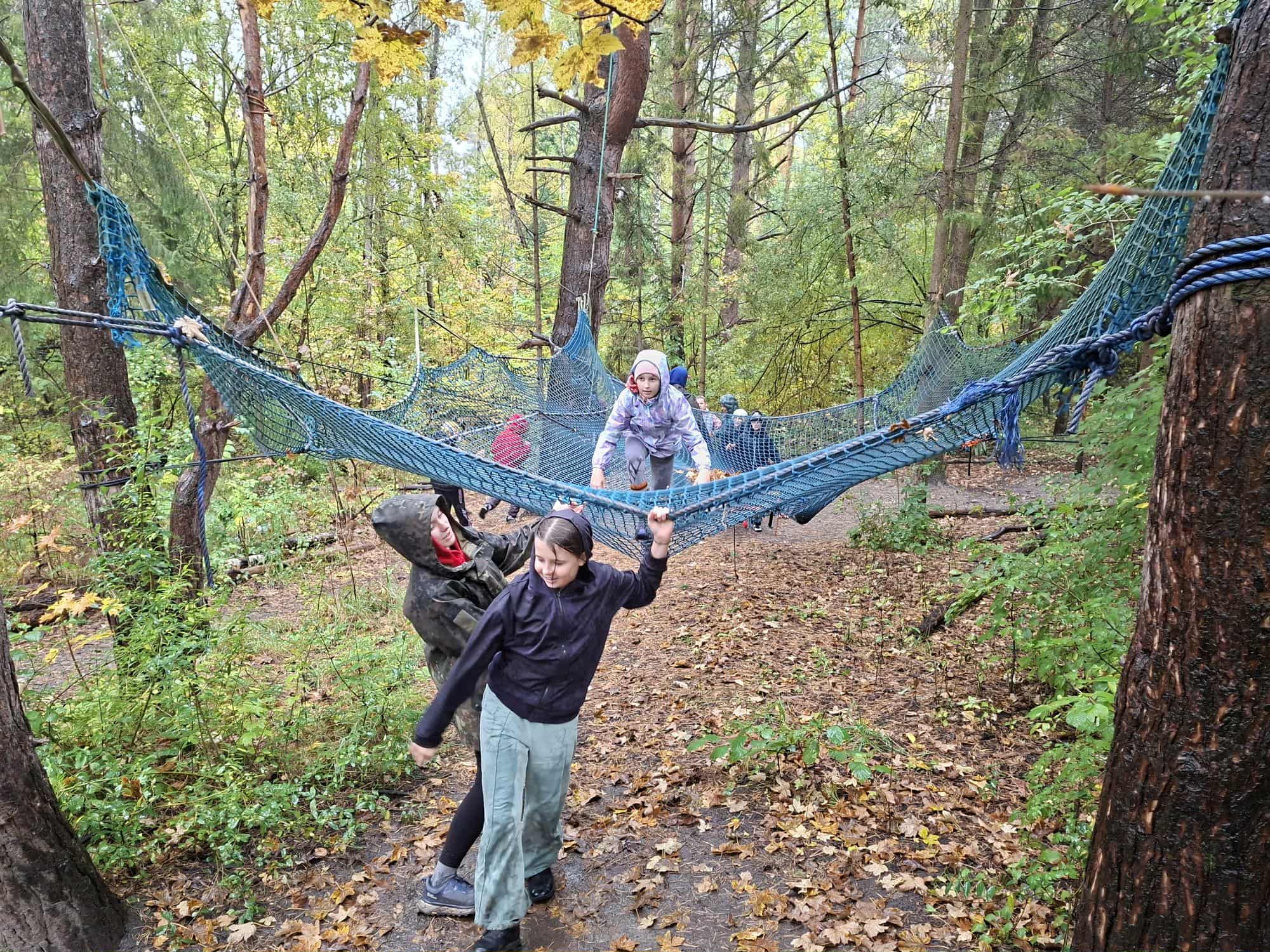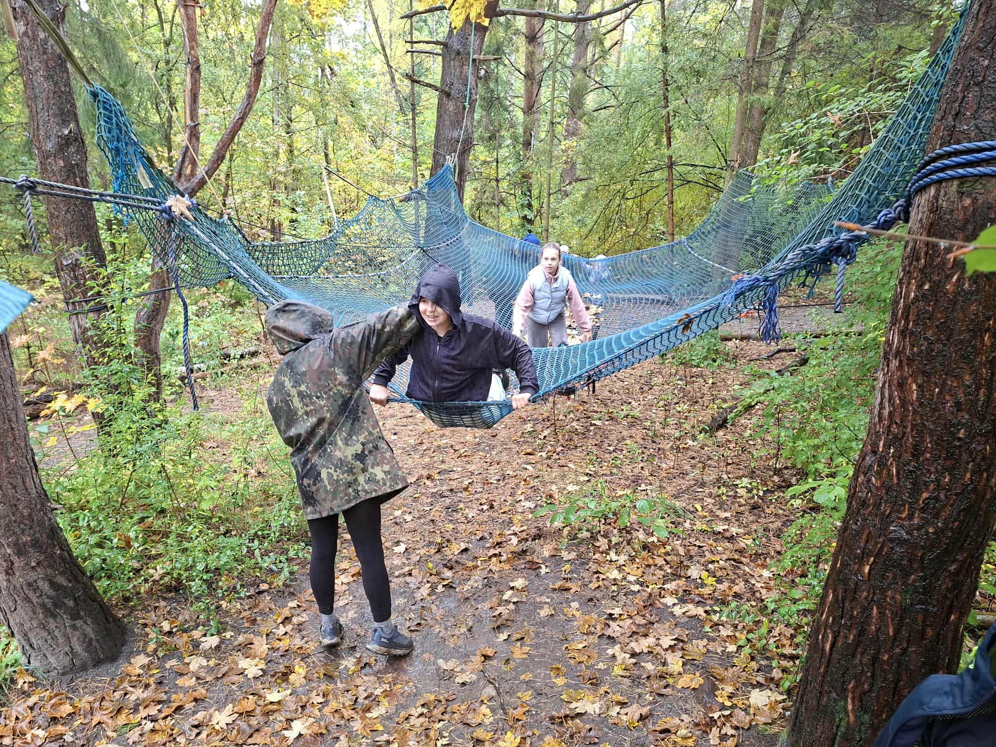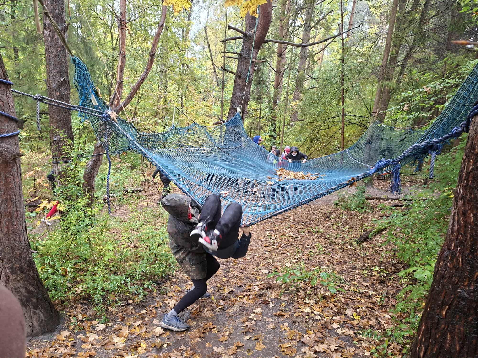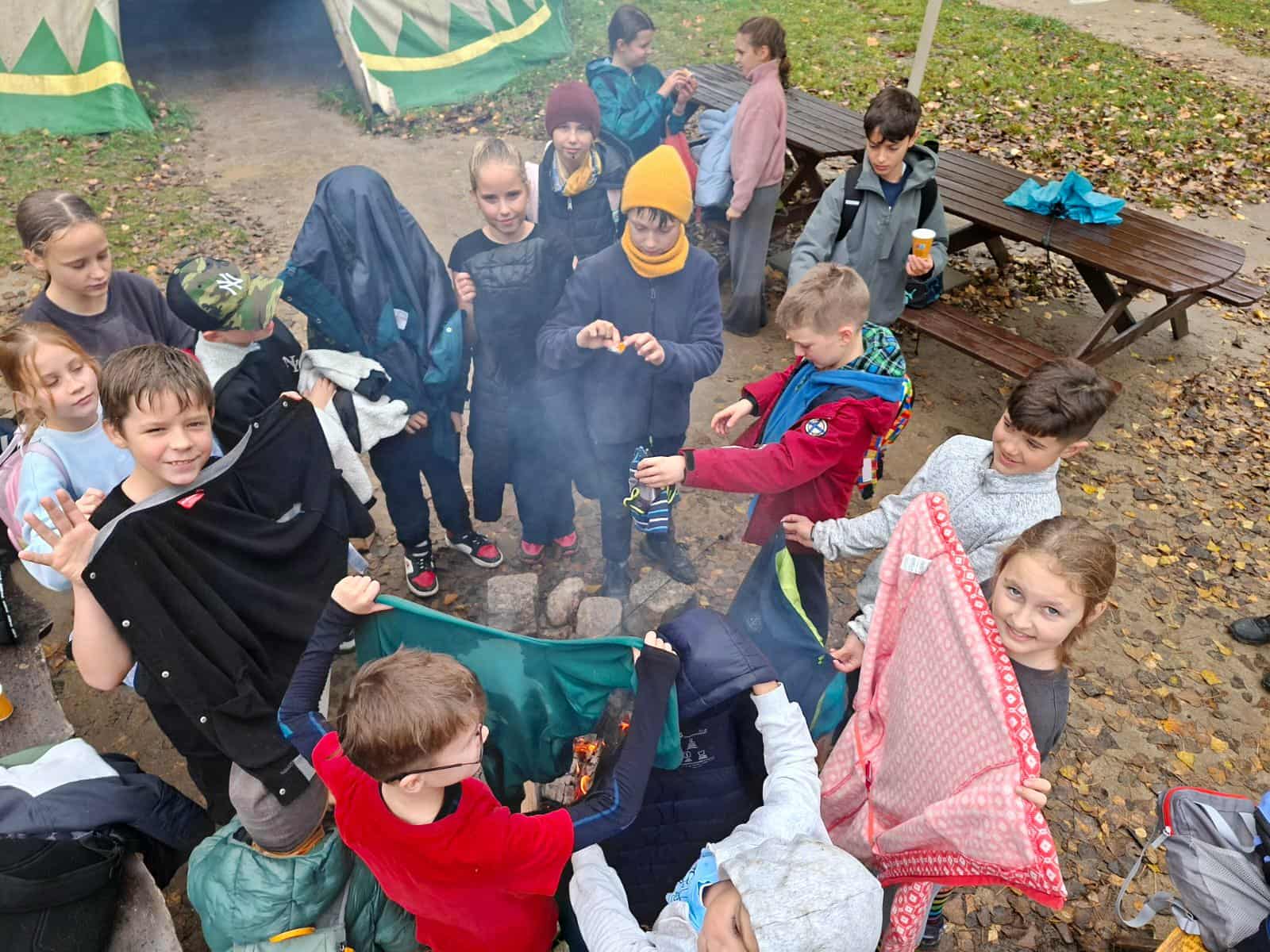 W piątek, klasy 3 i 4 wybrały się na wycieczkę do Parku Adventure w Gdyni Kolibkach. Już sama podróż była dla nas przygodą – wyruszyliśmy pociągiem, co dla wielu uczniów było miłą odmianą od codziennych dojazdów. W wagonach panowała radosna atmosfera: śmiech, rozmowy i wspólne podziwianie widoków za oknem sprawiły, że droga minęła nam bardzo szybko. Po dotarciu na miejsce powitał nas zespół instruktorów, którzy zaprosili nas do udziału w zabawie. Czekały na nas różnorodne zadania terenowe wymagające współpracy i zaangażowania, ucząc przy tym planowania, komunikacji i wzajemnego zaufania. Choć pogoda nie do końca nam sprzyjała – chwilami padał deszcz, a niebo było zasnute chmurami – nikt nie tracił dobrego humoru. Kurtki przeciwdeszczowe i szerokie uśmiechy wystarczyły, by nawet w kroplach deszczu znaleźć przyjemność ze wspólnej zabawy. Po intensywnych zajęciach przyszedł czas na krótki odpoczynek, ognisko, ciepłą herbatę i wspólne rozmowy pod wiatą. Pełni wrażeń i nowych doświadczeń wróciliśmy do szkoły, nieco zmęczeni, ale zadowoleni. Ta wycieczka pokazała nam, że nawet deszczowa pogoda nie jest w stanie popsuć dobrej zabawy, jeśli towarzyszy jej świetna ekipa i duch przygody!