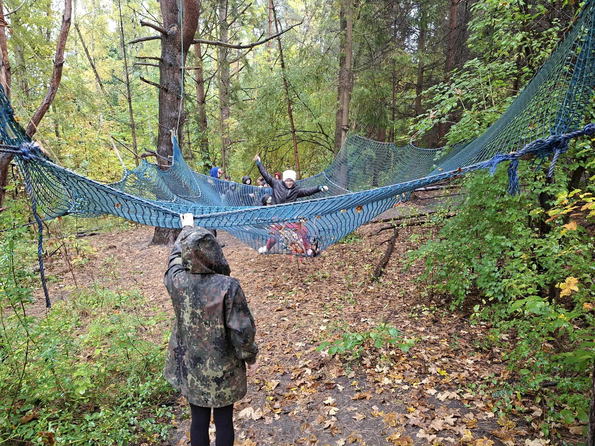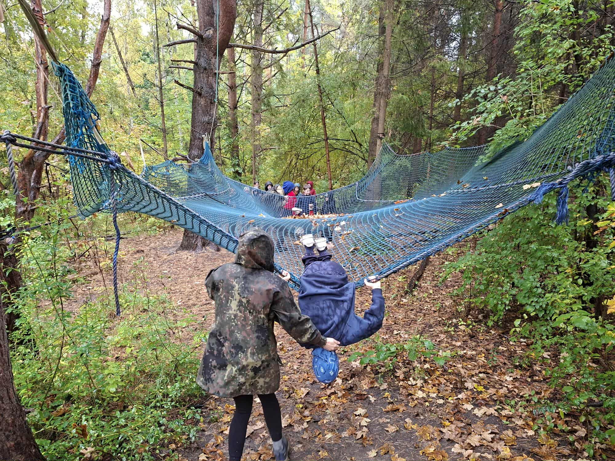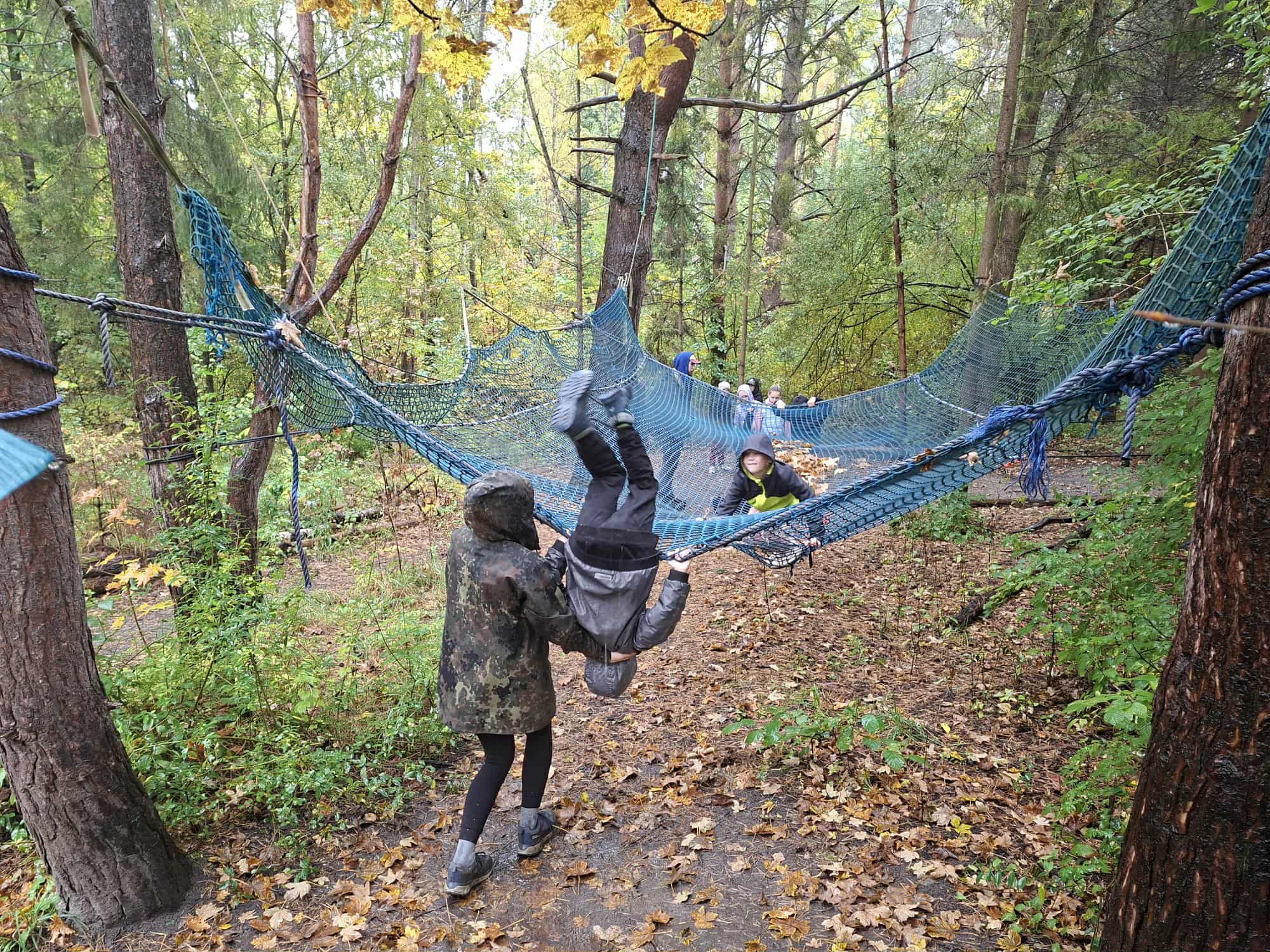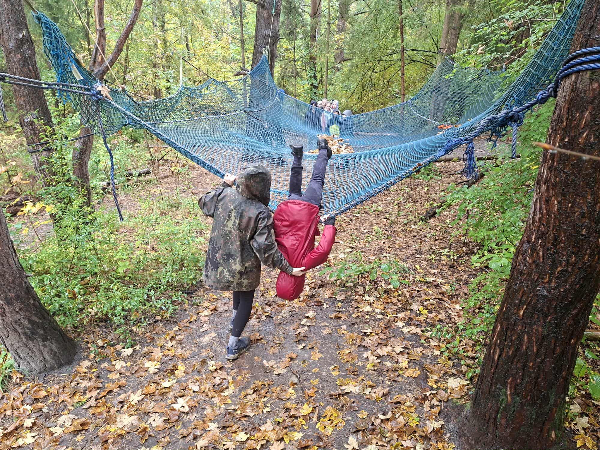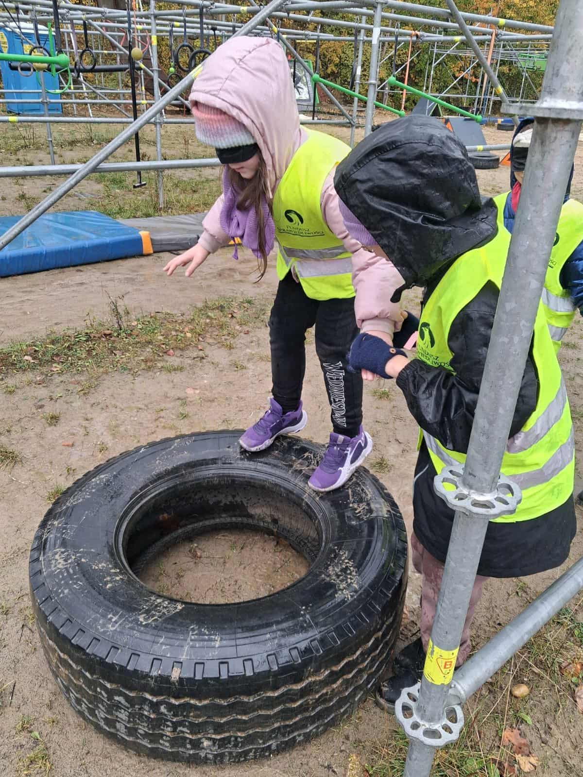 W piątek, klasy 3 i 4 wybrały się na wycieczkę do Parku Adventure w Gdyni Kolibkach. Już sama podróż była dla nas przygodą – wyruszyliśmy pociągiem, co dla wielu uczniów było miłą odmianą od codziennych dojazdów. W wagonach panowała radosna atmosfera: śmiech, rozmowy i wspólne podziwianie widoków za oknem sprawiły, że droga minęła nam bardzo szybko. Po dotarciu na miejsce powitał nas zespół instruktorów, którzy zaprosili nas do udziału w zabawie. Czekały na nas różnorodne zadania terenowe wymagające współpracy i zaangażowania, ucząc przy tym planowania, komunikacji i wzajemnego zaufania. Choć pogoda nie do końca nam sprzyjała – chwilami padał deszcz, a niebo było zasnute chmurami – nikt nie tracił dobrego humoru. Kurtki przeciwdeszczowe i szerokie uśmiechy wystarczyły, by nawet w kroplach deszczu znaleźć przyjemność ze wspólnej zabawy. Po intensywnych zajęciach przyszedł czas na krótki odpoczynek, ognisko, ciepłą herbatę i wspólne rozmowy pod wiatą. Pełni wrażeń i nowych doświadczeń wróciliśmy do szkoły, nieco zmęczeni, ale zadowoleni. Ta wycieczka pokazała nam, że nawet deszczowa pogoda nie jest w stanie popsuć dobrej zabawy, jeśli towarzyszy jej świetna ekipa i duch przygody!