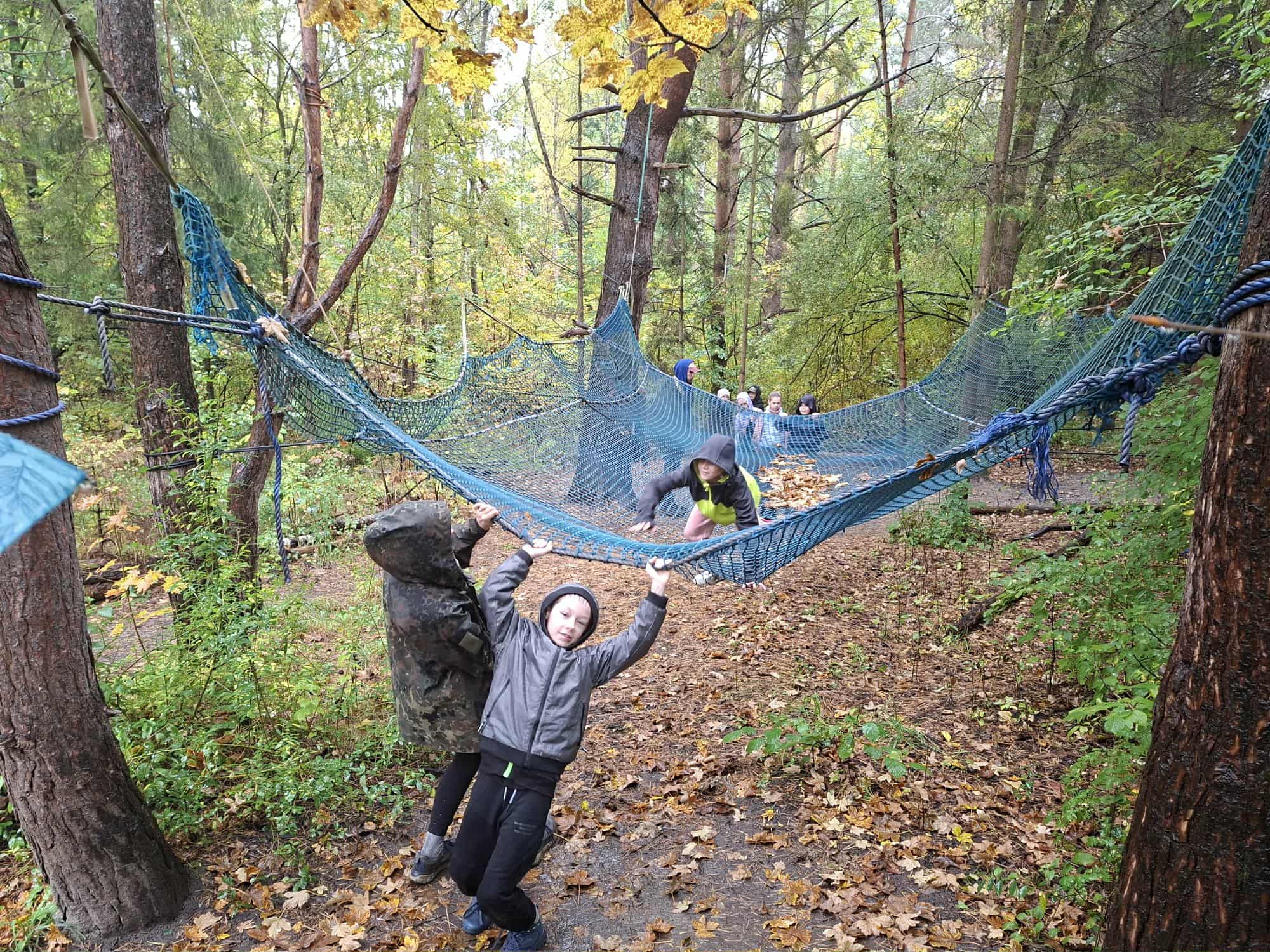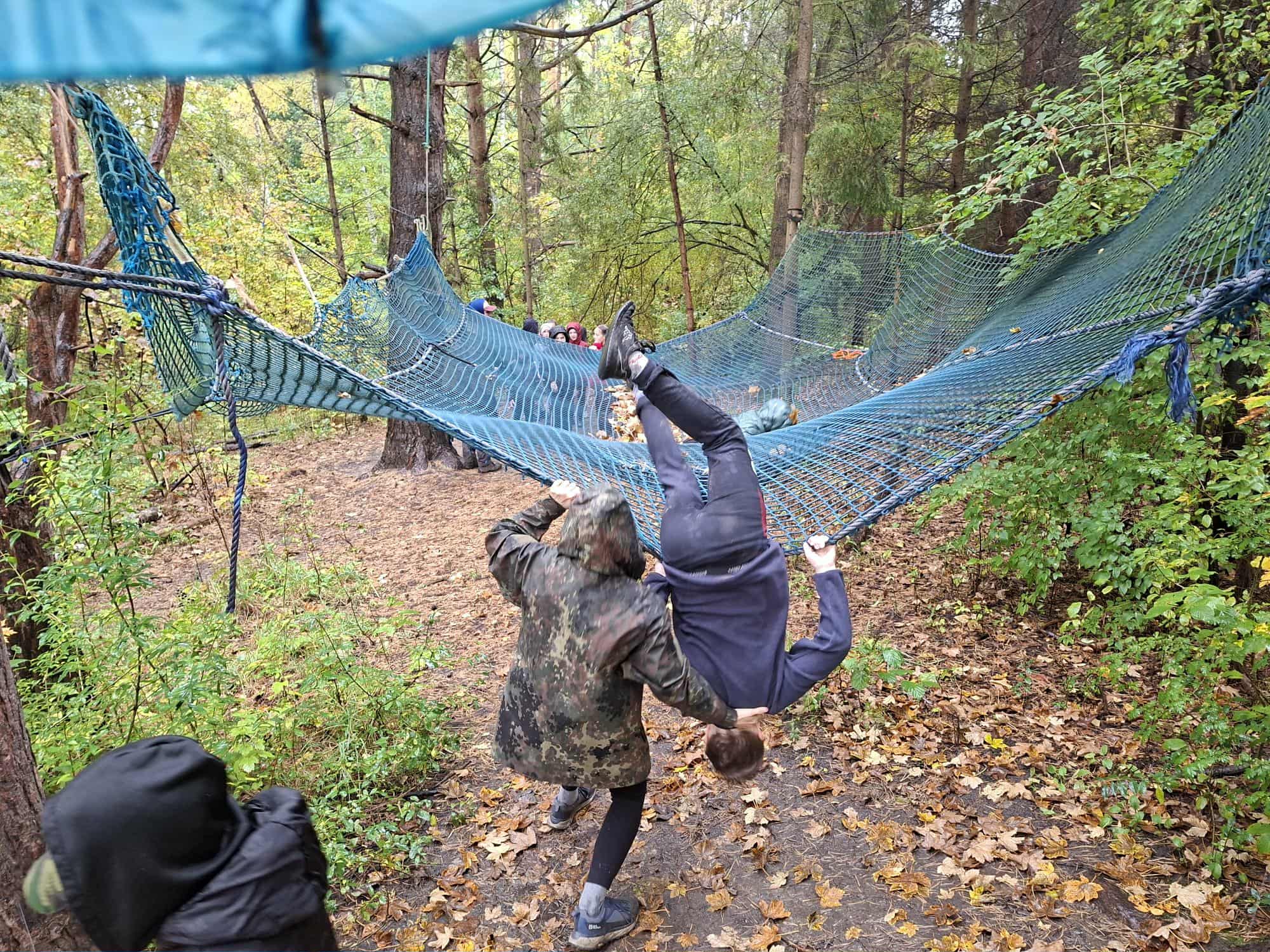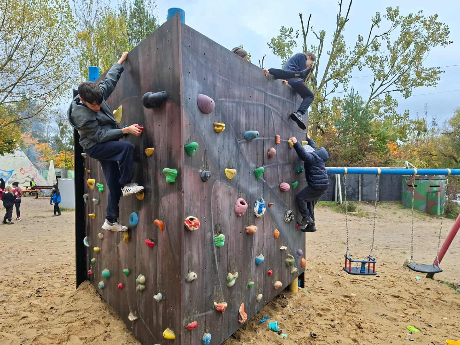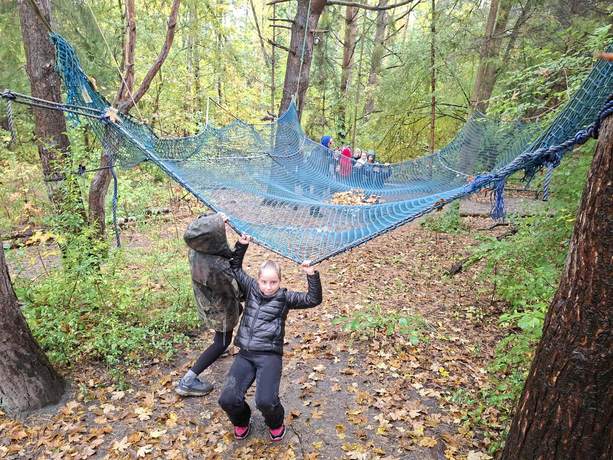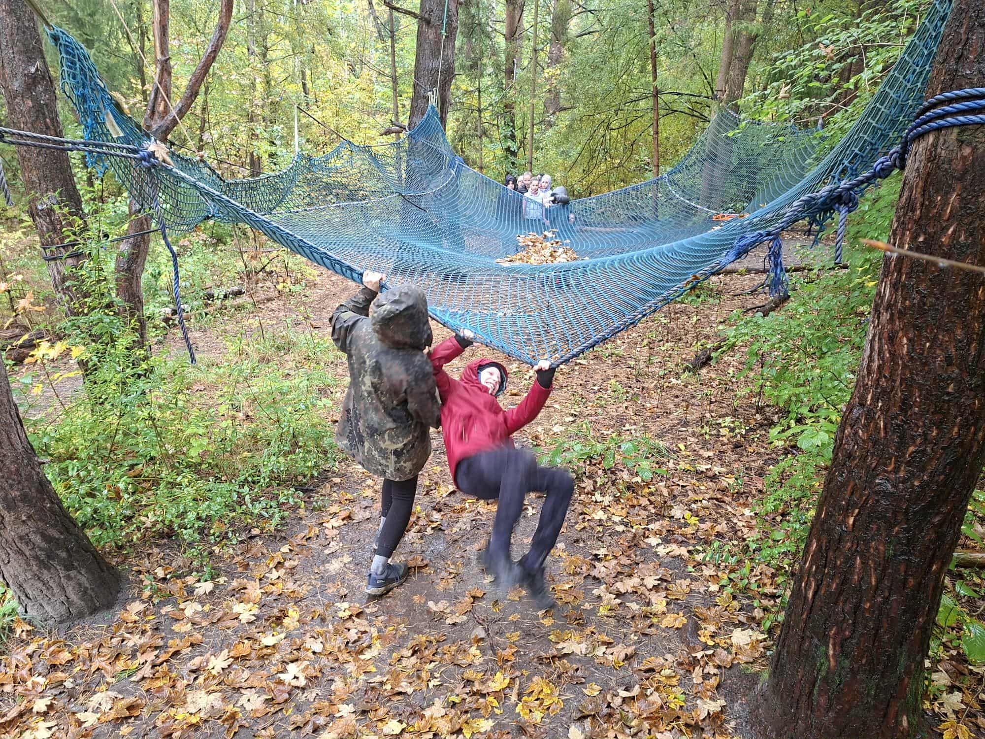 W piątek, klasy 3 i 4 wybrały się na wycieczkę do Parku Adventure w Gdyni Kolibkach. Już sama podróż była dla nas przygodą – wyruszyliśmy pociągiem, co dla wielu uczniów było miłą odmianą od codziennych dojazdów. W wagonach panowała radosna atmosfera: śmiech, rozmowy i wspólne podziwianie widoków za oknem sprawiły, że droga minęła nam bardzo szybko. Po dotarciu na miejsce powitał nas zespół instruktorów, którzy zaprosili nas do udziału w zabawie. Czekały na nas różnorodne zadania terenowe wymagające współpracy i zaangażowania, ucząc przy tym planowania, komunikacji i wzajemnego zaufania. Choć pogoda nie do końca nam sprzyjała – chwilami padał deszcz, a niebo było zasnute chmurami – nikt nie tracił dobrego humoru. Kurtki przeciwdeszczowe i szerokie uśmiechy wystarczyły, by nawet w kroplach deszczu znaleźć przyjemność ze wspólnej zabawy. Po intensywnych zajęciach przyszedł czas na krótki odpoczynek, ognisko, ciepłą herbatę i wspólne rozmowy pod wiatą. Pełni wrażeń i nowych doświadczeń wróciliśmy do szkoły, nieco zmęczeni, ale zadowoleni. Ta wycieczka pokazała nam, że nawet deszczowa pogoda nie jest w stanie popsuć dobrej zabawy, jeśli towarzyszy jej świetna ekipa i duch przygody!