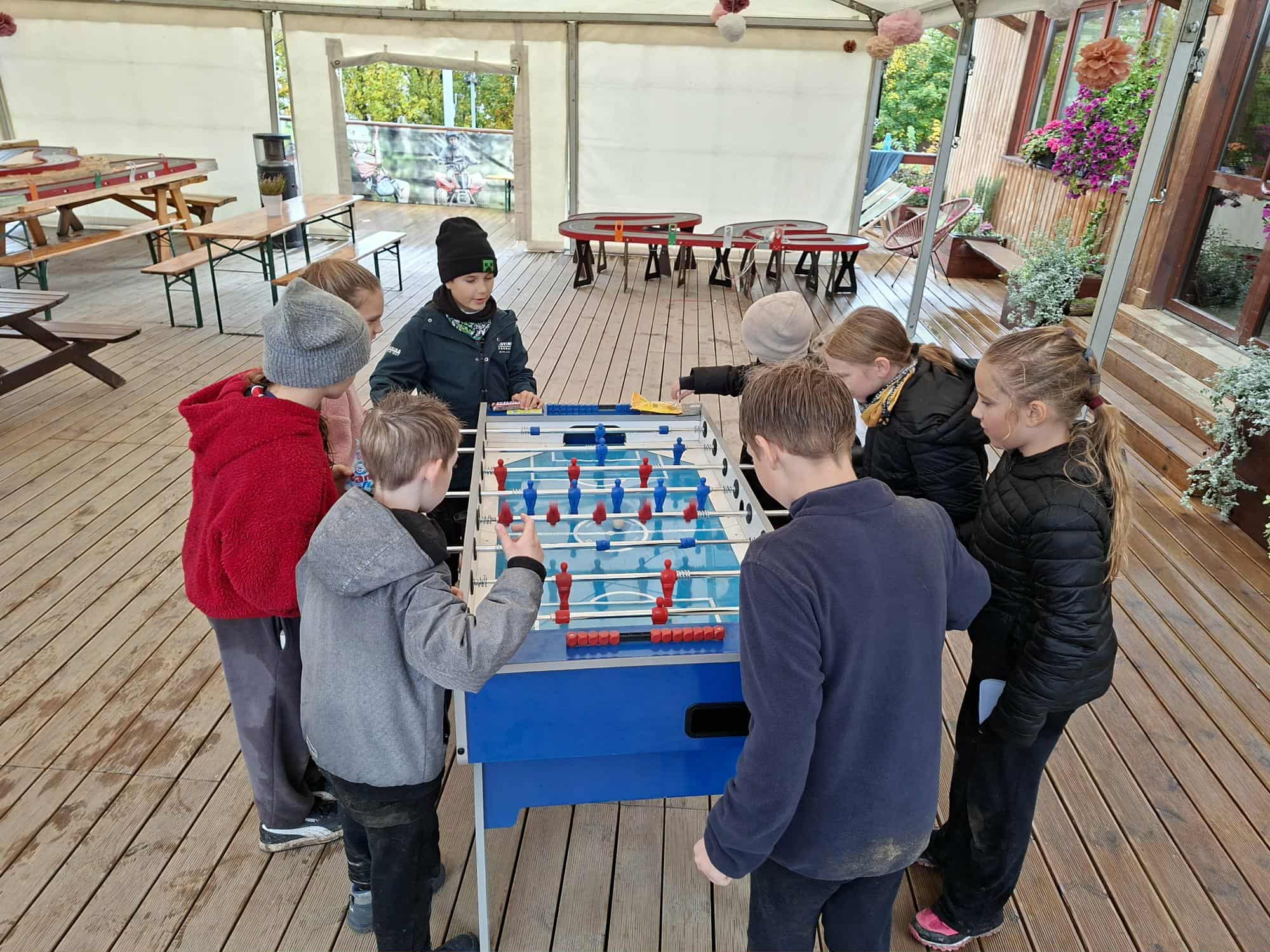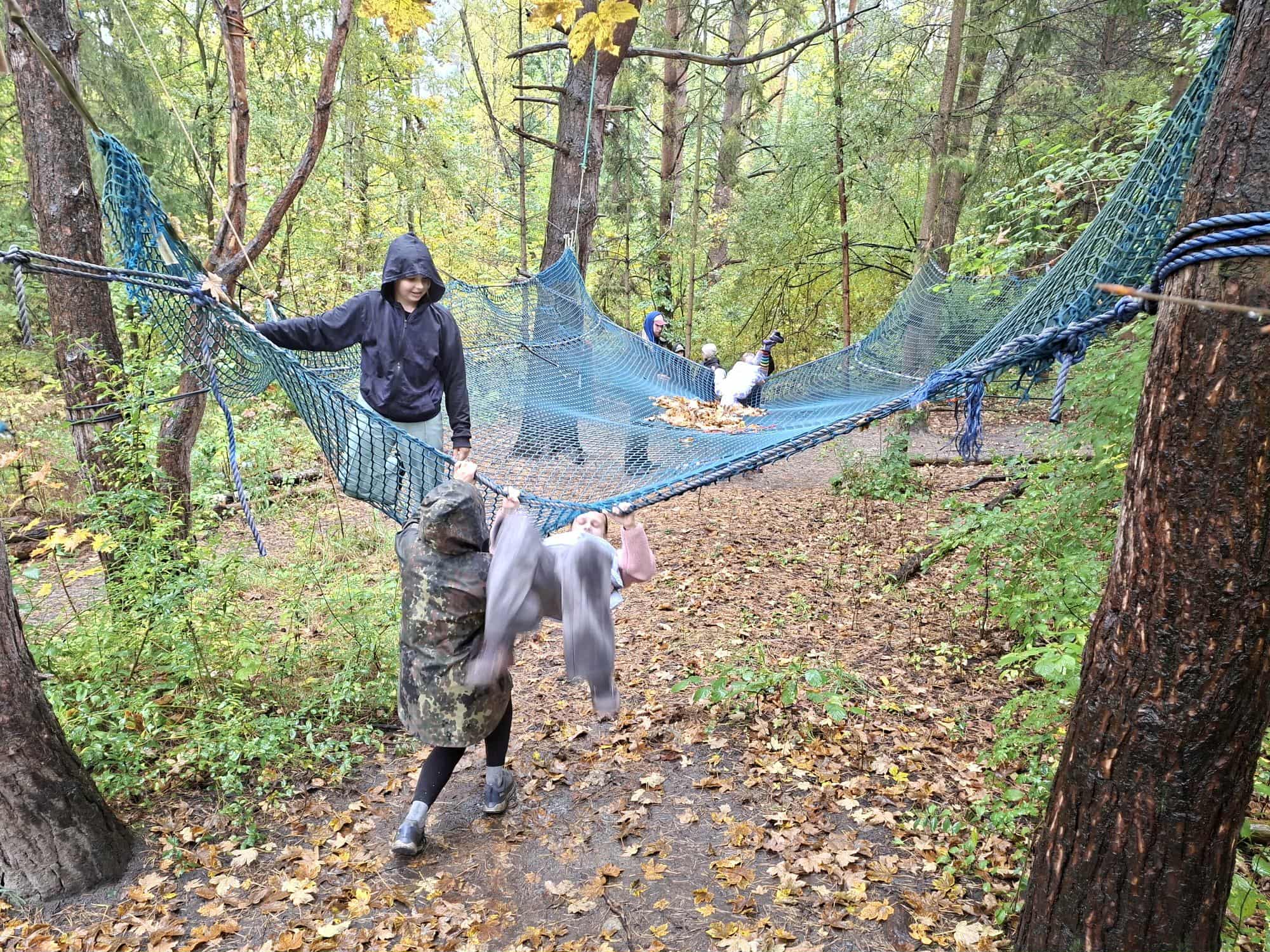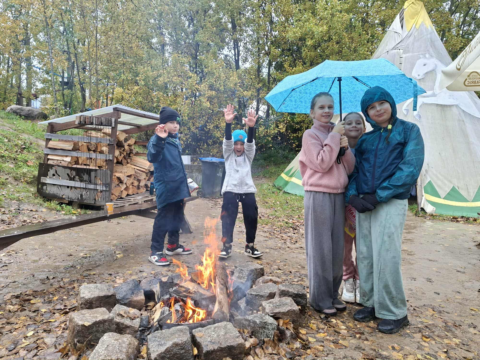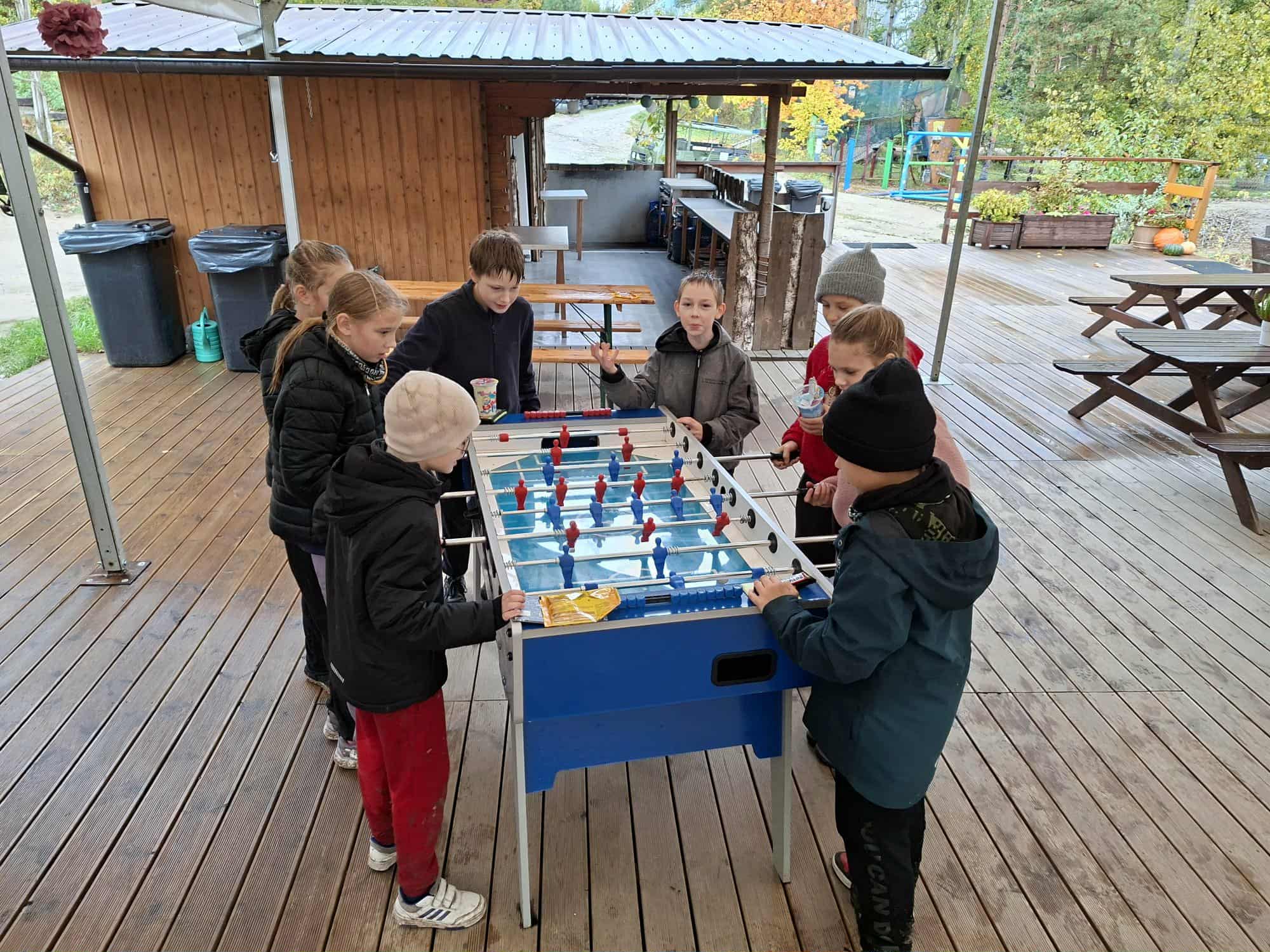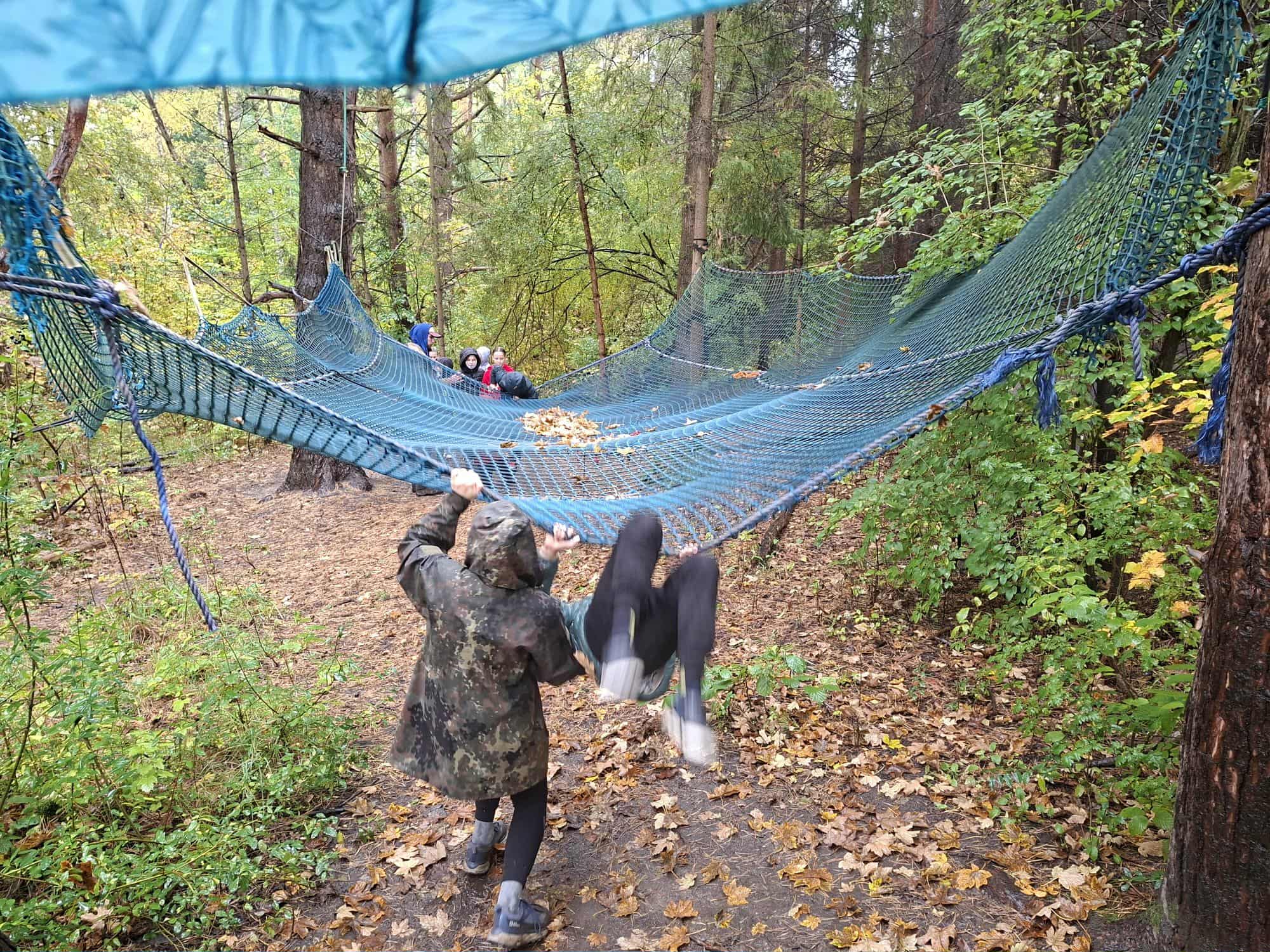 W piątek, klasy 3 i 4 wybrały się na wycieczkę do Parku Adventure w Gdyni Kolibkach. Już sama podróż była dla nas przygodą – wyruszyliśmy pociągiem, co dla wielu uczniów było miłą odmianą od codziennych dojazdów. W wagonach panowała radosna atmosfera: śmiech, rozmowy i wspólne podziwianie widoków za oknem sprawiły, że droga minęła nam bardzo szybko. Po dotarciu na miejsce powitał nas zespół instruktorów, którzy zaprosili nas do udziału w zabawie. Czekały na nas różnorodne zadania terenowe wymagające współpracy i zaangażowania, ucząc przy tym planowania, komunikacji i wzajemnego zaufania. Choć pogoda nie do końca nam sprzyjała – chwilami padał deszcz, a niebo było zasnute chmurami – nikt nie tracił dobrego humoru. Kurtki przeciwdeszczowe i szerokie uśmiechy wystarczyły, by nawet w kroplach deszczu znaleźć przyjemność ze wspólnej zabawy. Po intensywnych zajęciach przyszedł czas na krótki odpoczynek, ognisko, ciepłą herbatę i wspólne rozmowy pod wiatą. Pełni wrażeń i nowych doświadczeń wróciliśmy do szkoły, nieco zmęczeni, ale zadowoleni. Ta wycieczka pokazała nam, że nawet deszczowa pogoda nie jest w stanie popsuć dobrej zabawy, jeśli towarzyszy jej świetna ekipa i duch przygody!