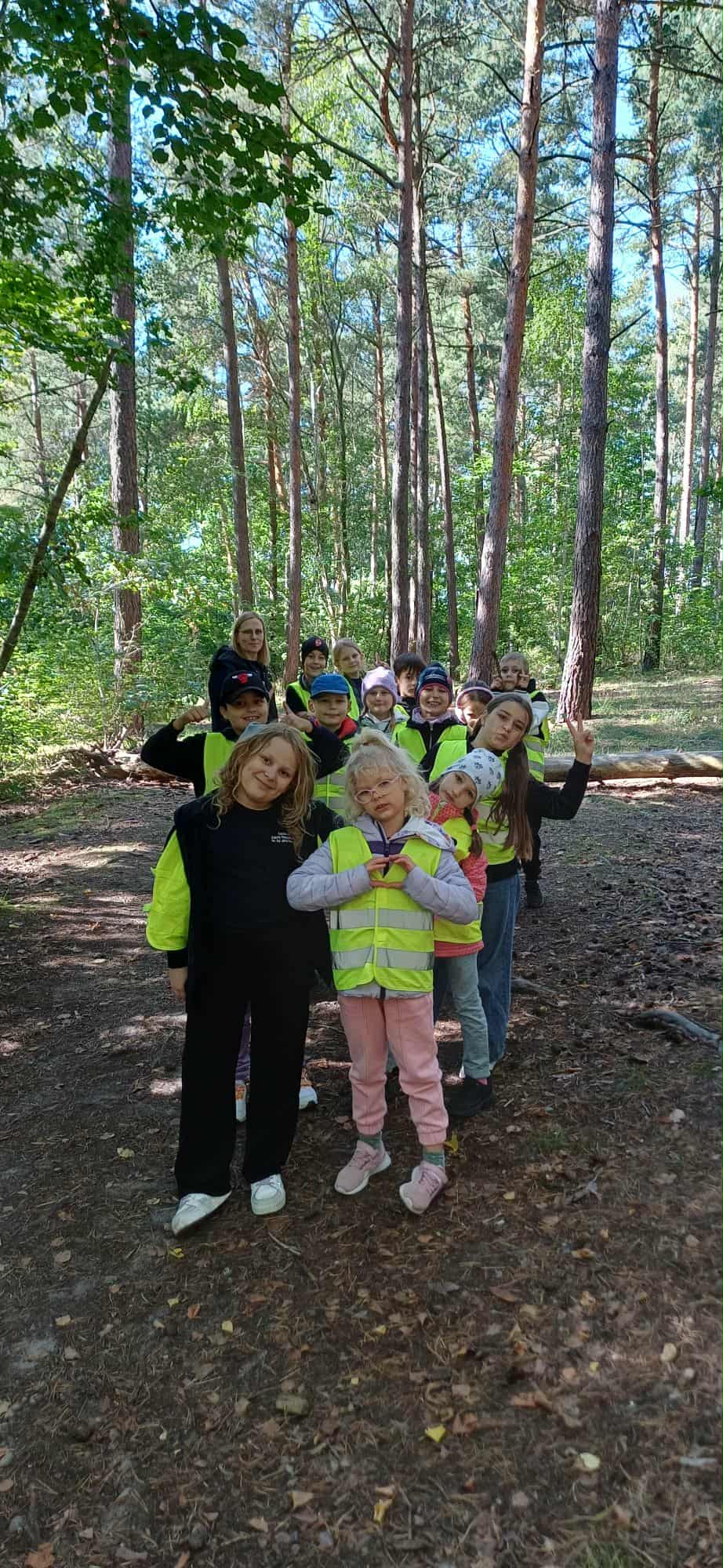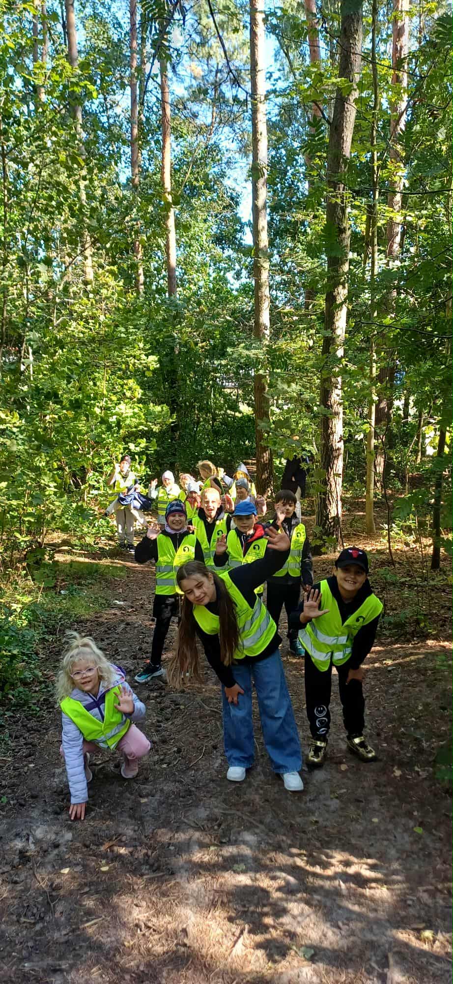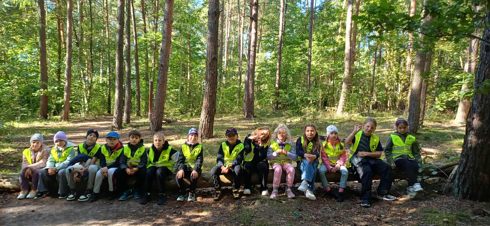 Kolejnym punktem programu była krótka lekcja przyrody. Dzieci dowiedziały się o różnych gatunkach drzew, roślin i zwierząt zamieszkujących las. Z zapartym tchem słuchały o życiu mrówek, dzięciołach, sarnach i innych leśnych stworzeniach. Dzieci biegały po lesie, grały w chowanego, podchody i inne gry zespołowe. Wszyscy świetnie się bawili, a zmęczenie po aktywnym dniu nie było im straszne. W powietrzu unosił się zapach świeżego powietrza i leśnych aromatów. Zanim nadszedł czas powrotu, uczniowie uporządkowali teren, zbierając śmieci i dbając o czystość lasu.