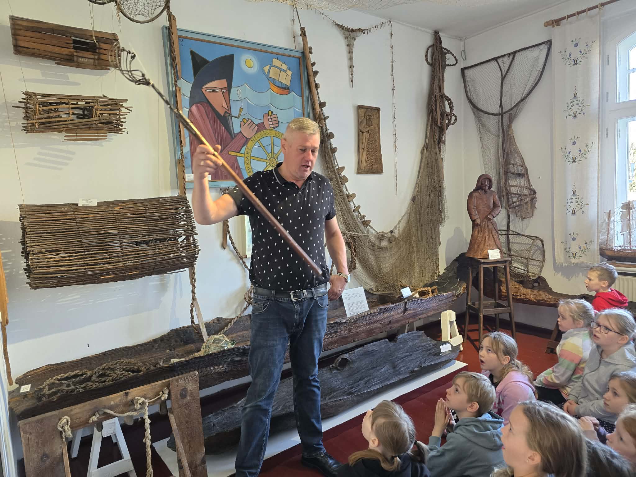 Podczas zwiedzania uczniowie poznali historię powstania muzeum oraz sylwetki jego założycieli, których pasja i zaangażowanie pozwoliły ocalić wiele cennych pamiątek. Ekspozycje przybliżyły dzieciom realia życia dawnych Kaszubów – ich pracę, zwyczaje, a także wartości, które kształtowały lokalną społeczność. Uczniowie dowiedzieli się, czym zajmowali się mieszkańcy regionu, jak wyglądały ich domy oraz jakie tradycje towarzyszyły im na co dzień. Co ważne, wiele z tych zwyczajów przetrwało do dziś i nadal stanowi istotny element tożsamości kaszubskiej