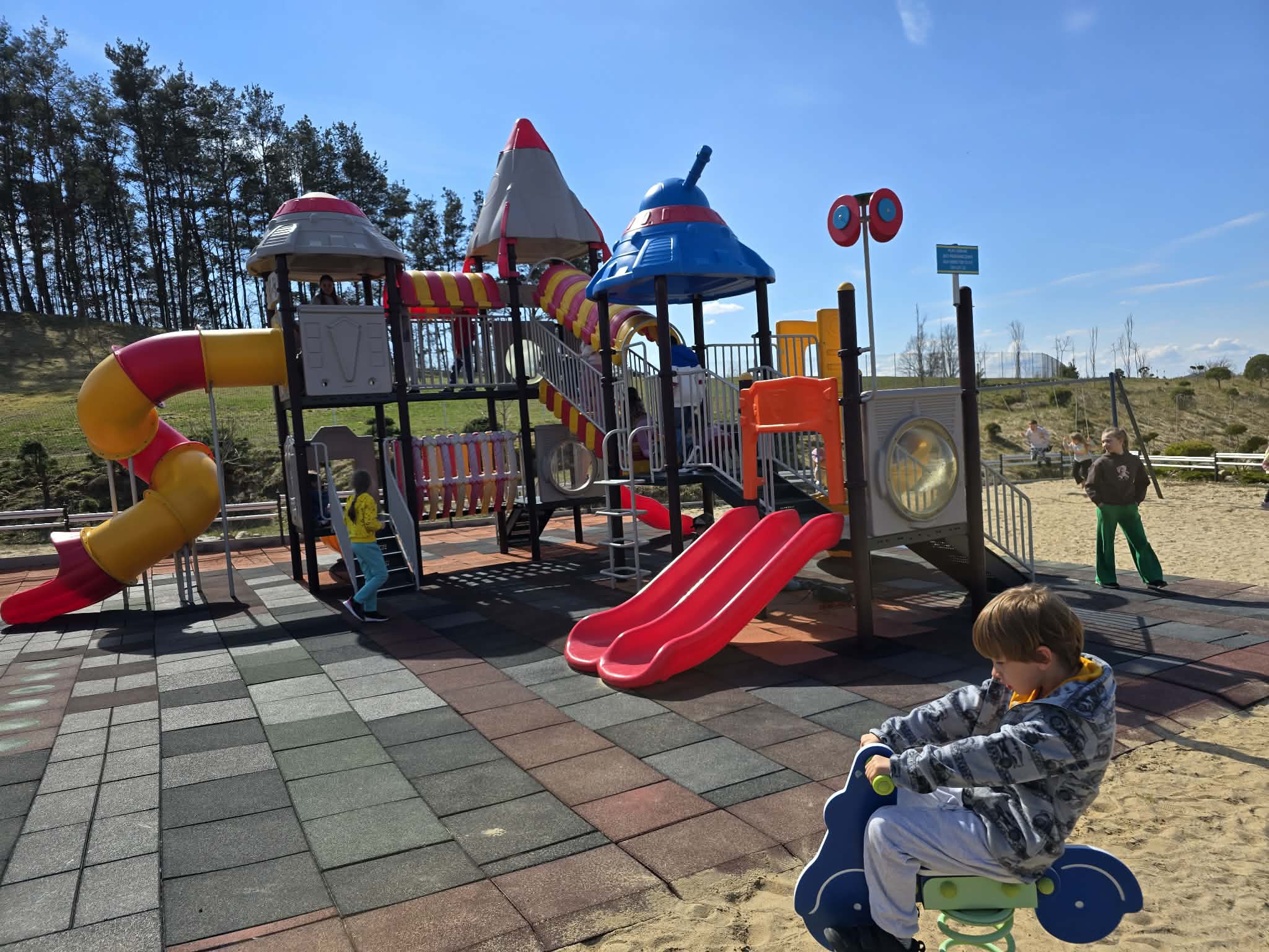 Na zakończenie dnia znalazł się również czas na swobodną zabawę na placu zabaw, która była doskonałą okazją do integracji i odpoczynku po intensywnym dniu pełnym wrażeń.