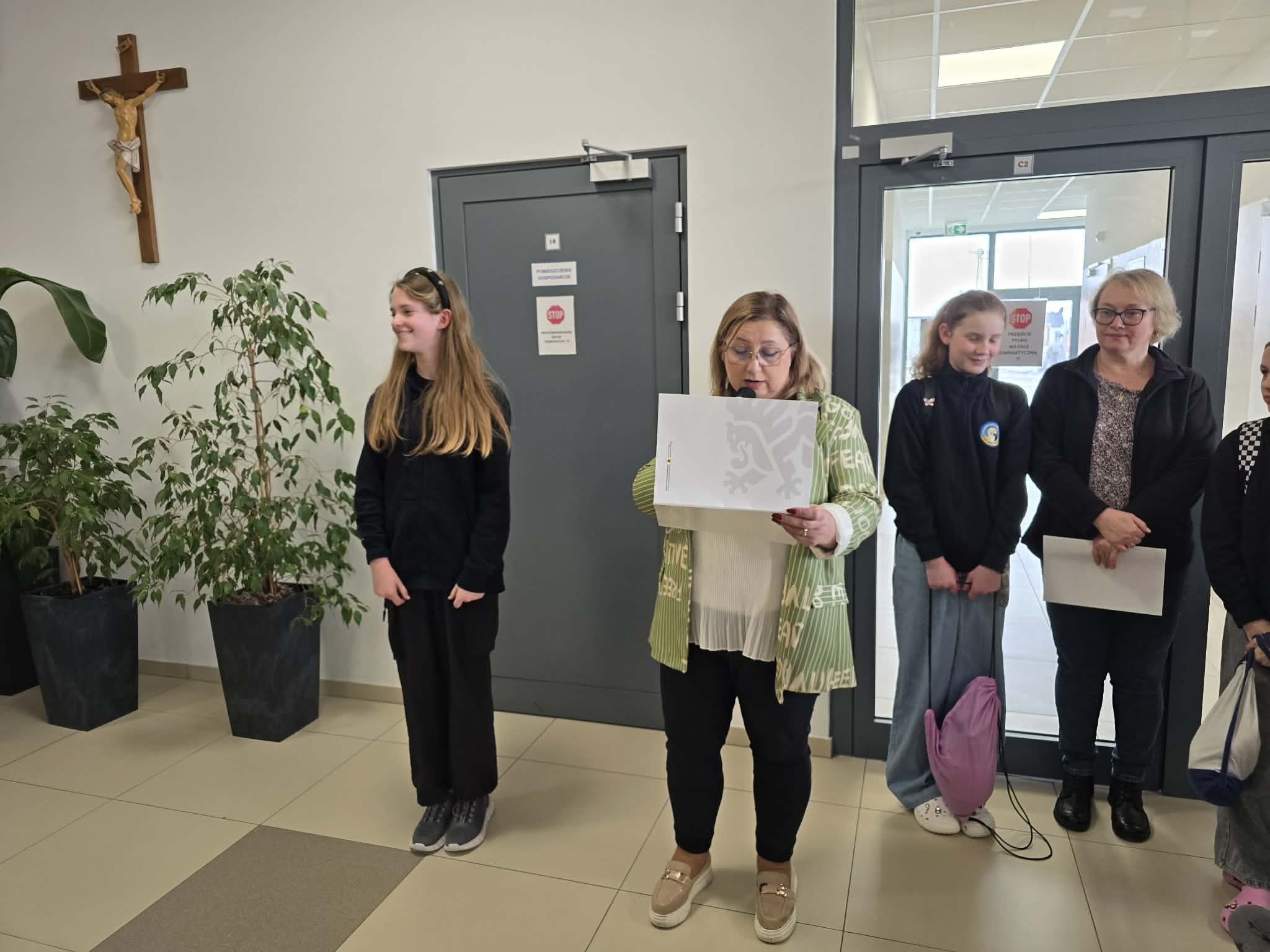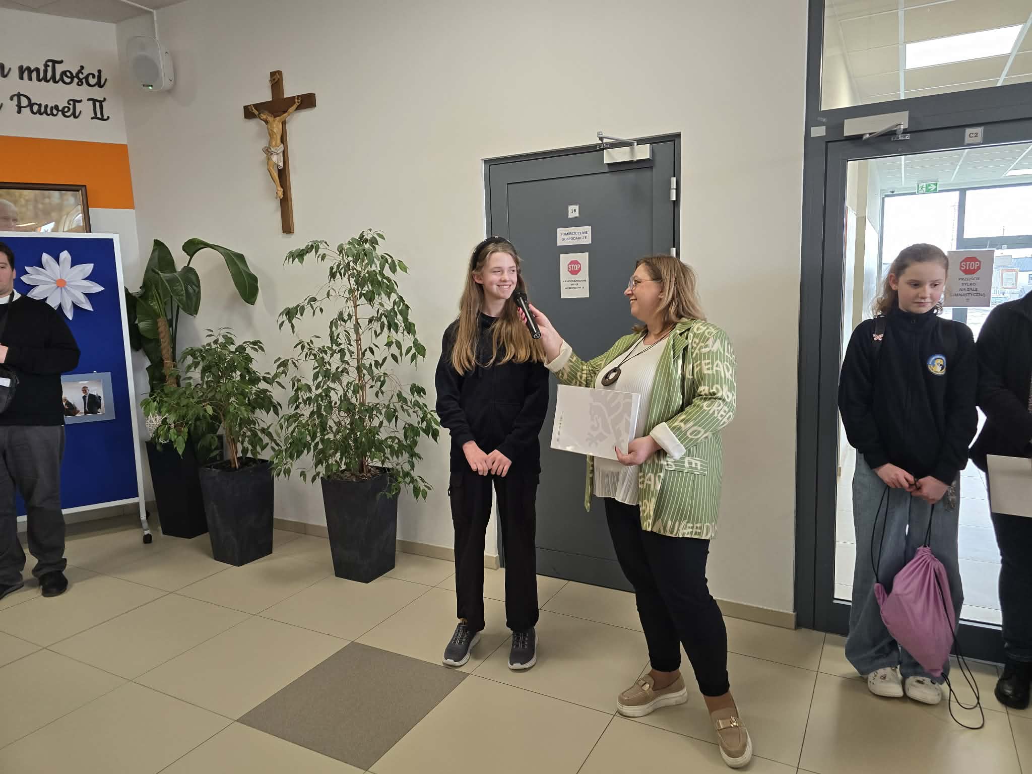 Dziś, po przerwie modlitewnej, odbyło się uroczyste wręczenie dyplomu oraz nagrody. Był to wyjątkowy moment, w którym cała społeczność szkolna mogła pogratulować Suzanne jej sukcesu i wspólnie cieszyć się z tego wyróżnienia.