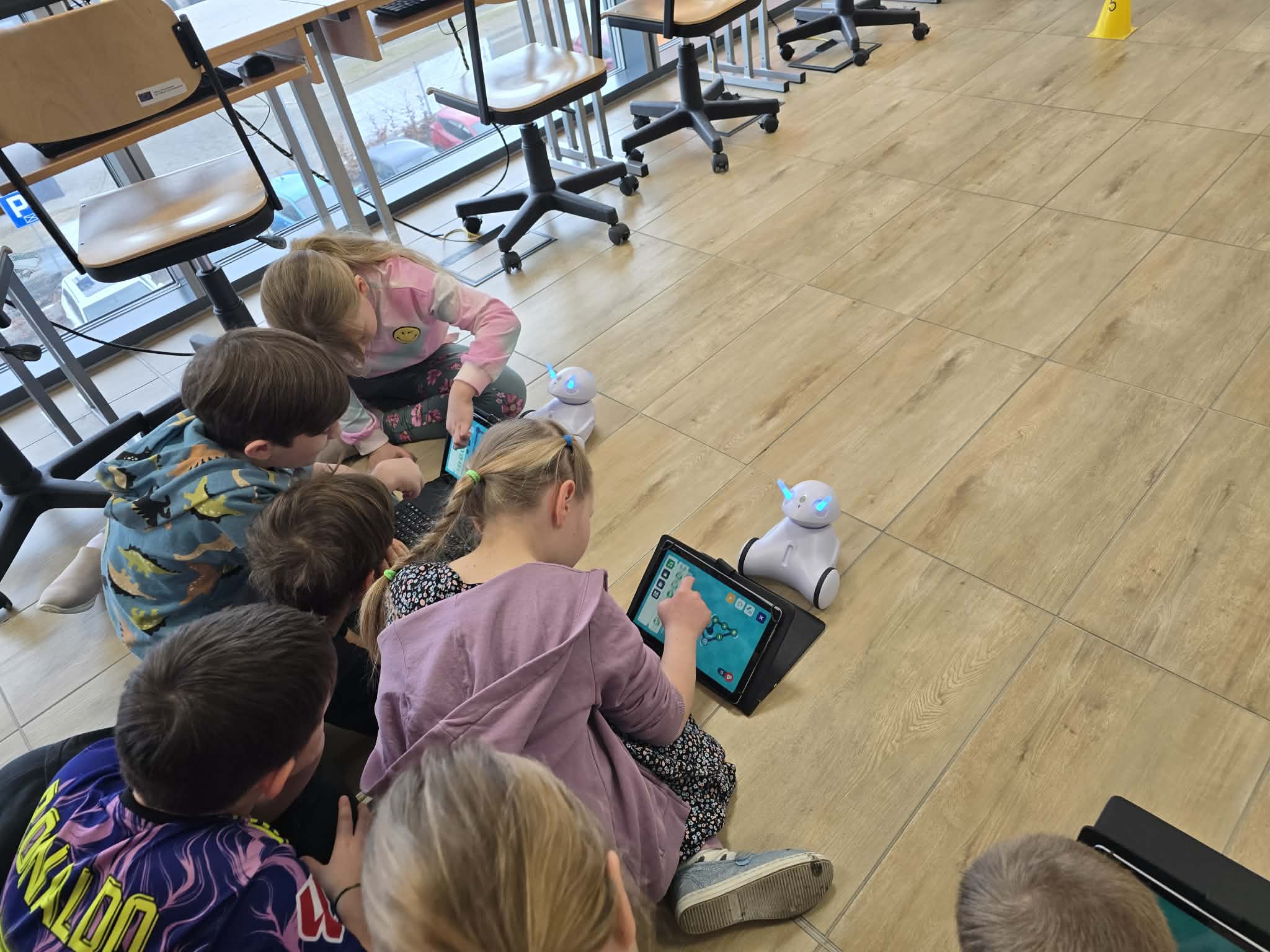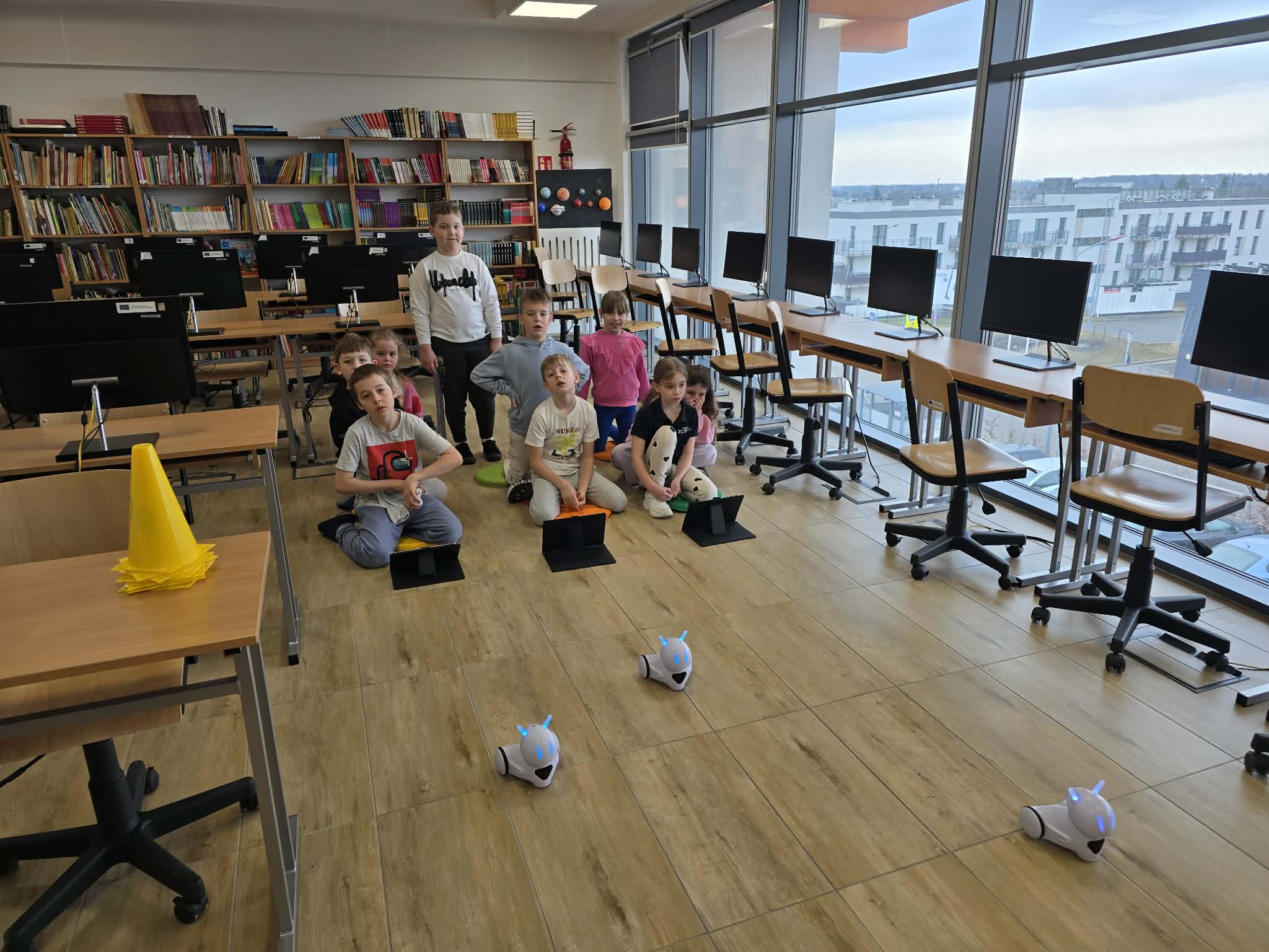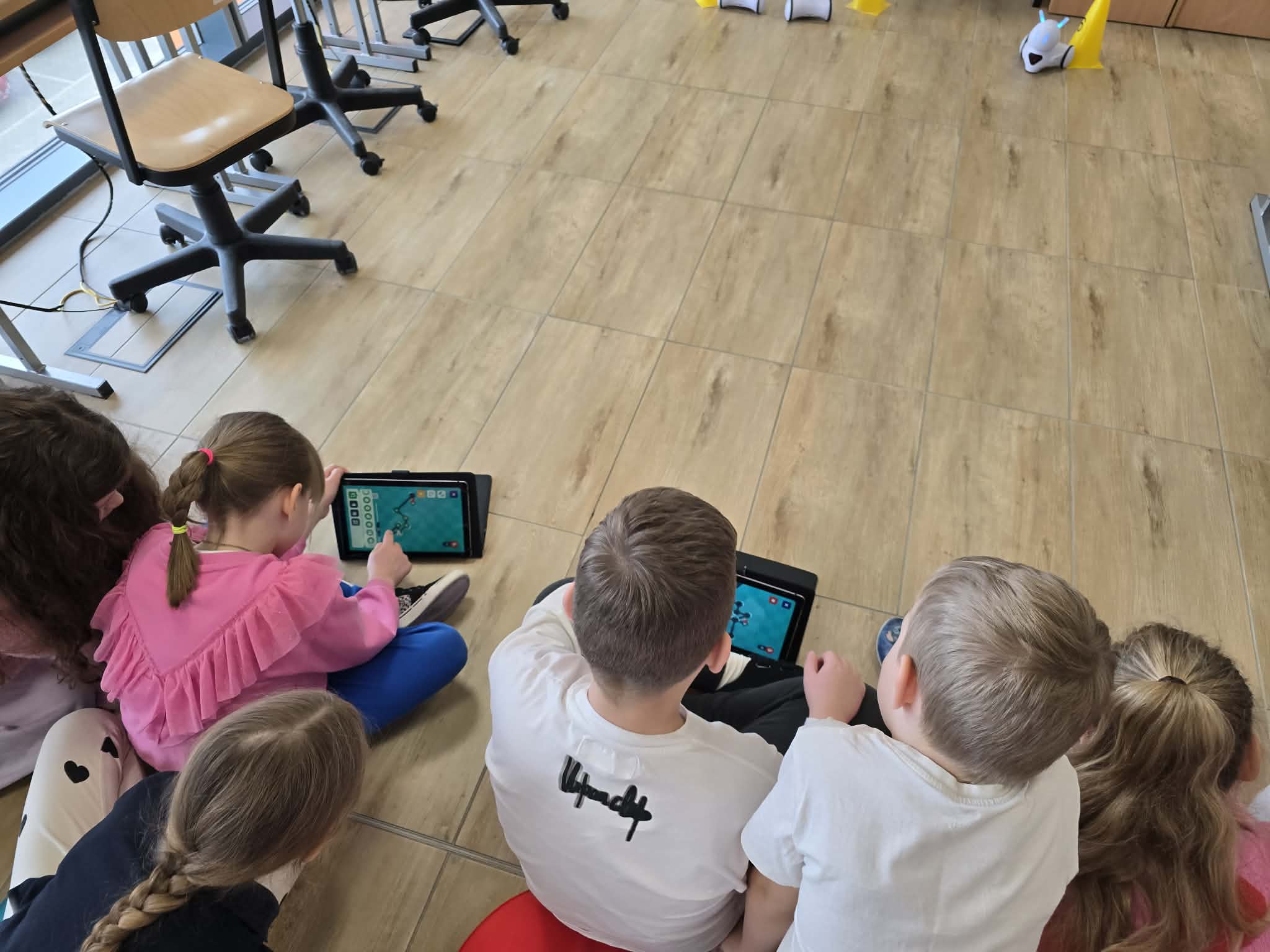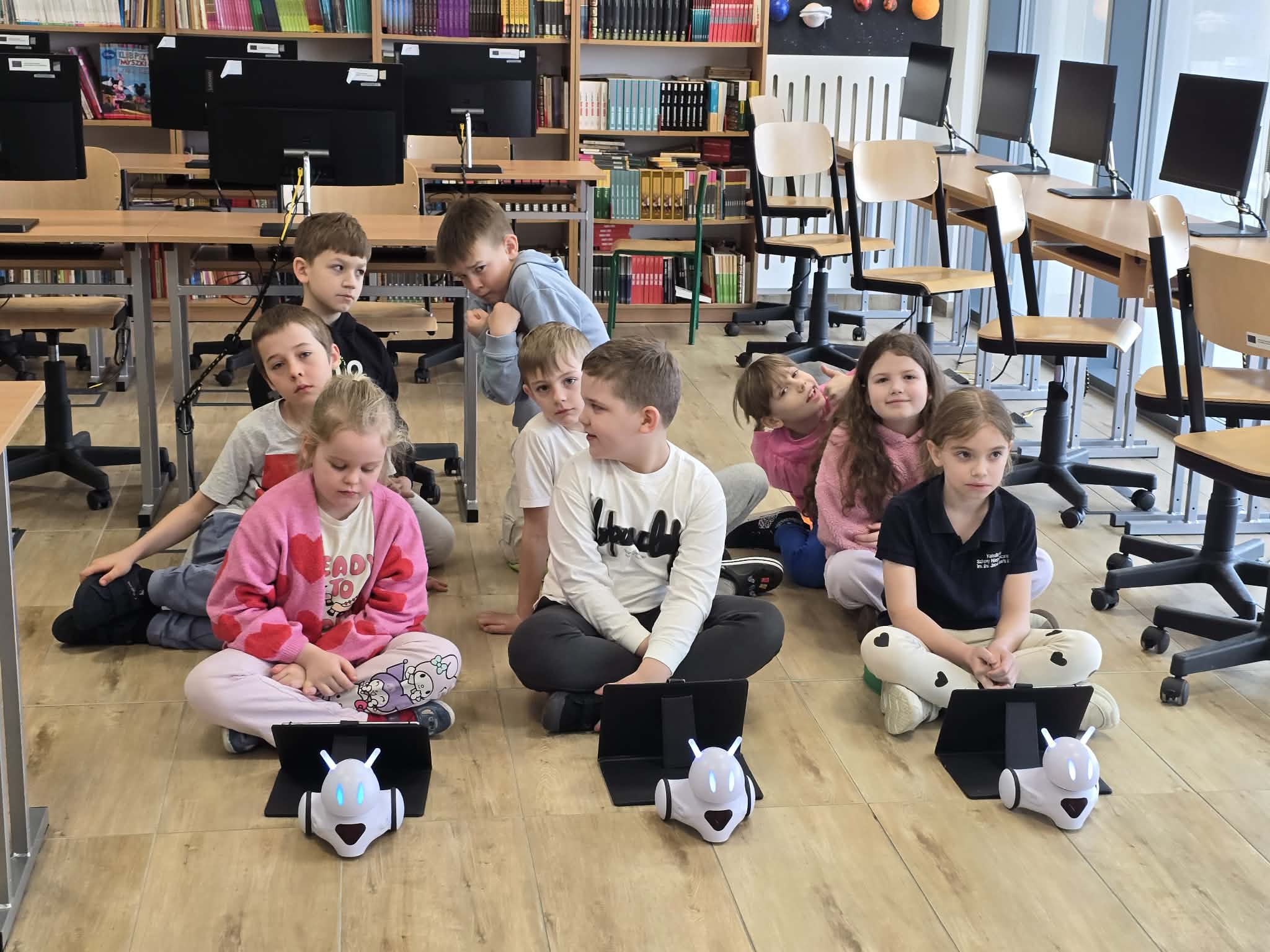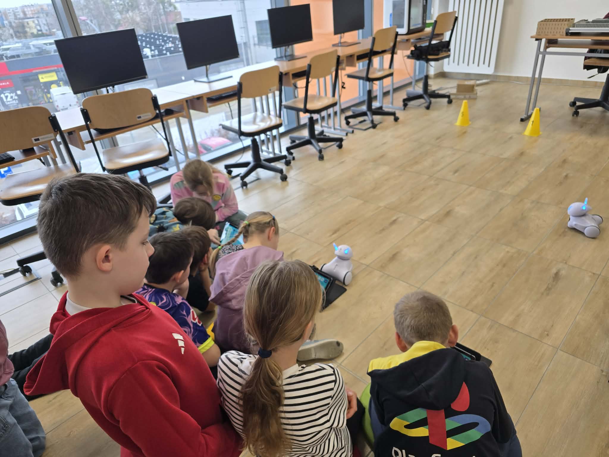 Na dzisiejszych zajęciach z informatyki w klasie 2b było wyjątkowo głośno, a emocje sięgały zenitu. Wszystko za sprawą niezwykłego wyścigu robotów Photon, który połączył naukę programowania z matematyką.