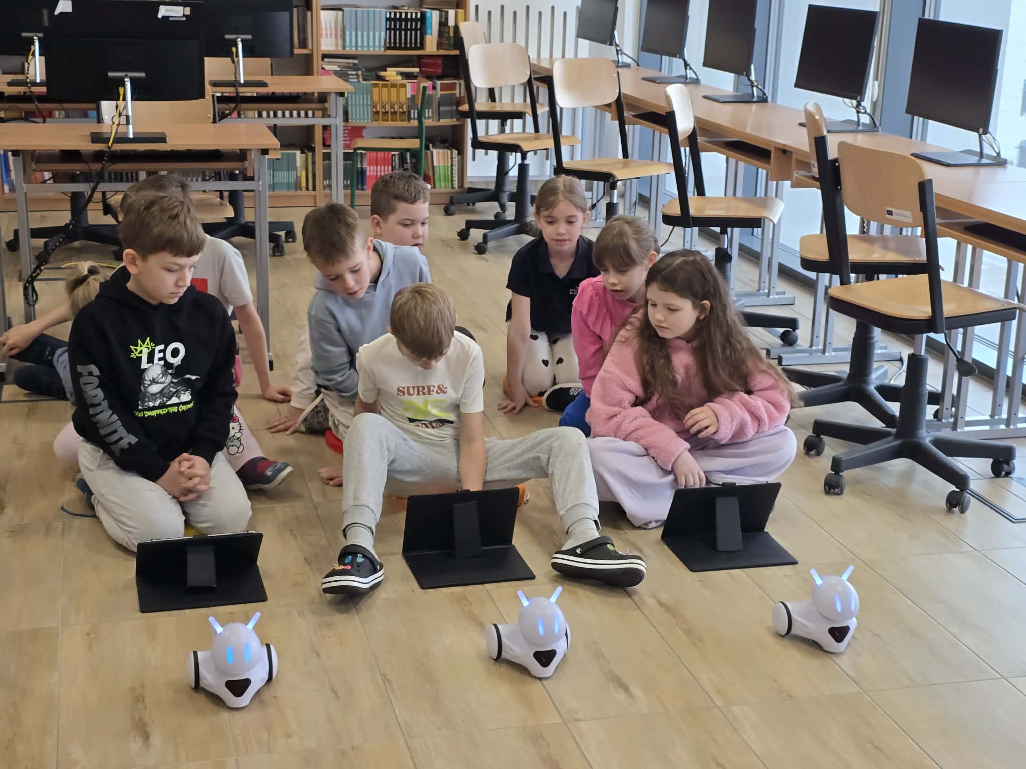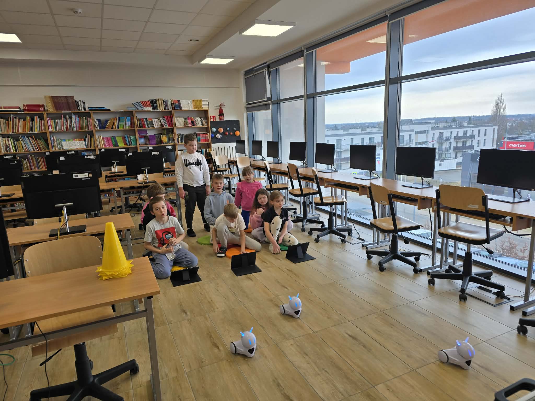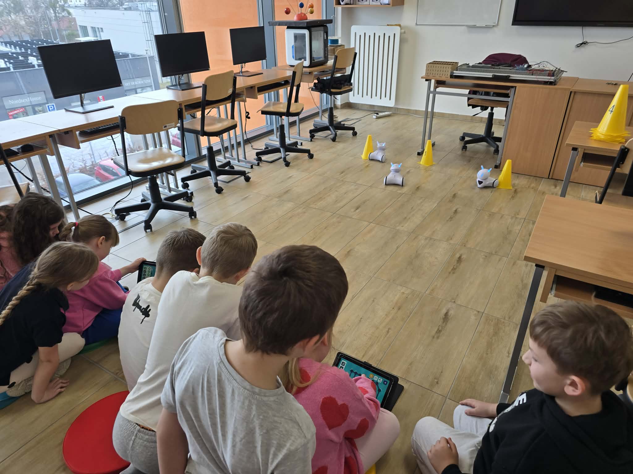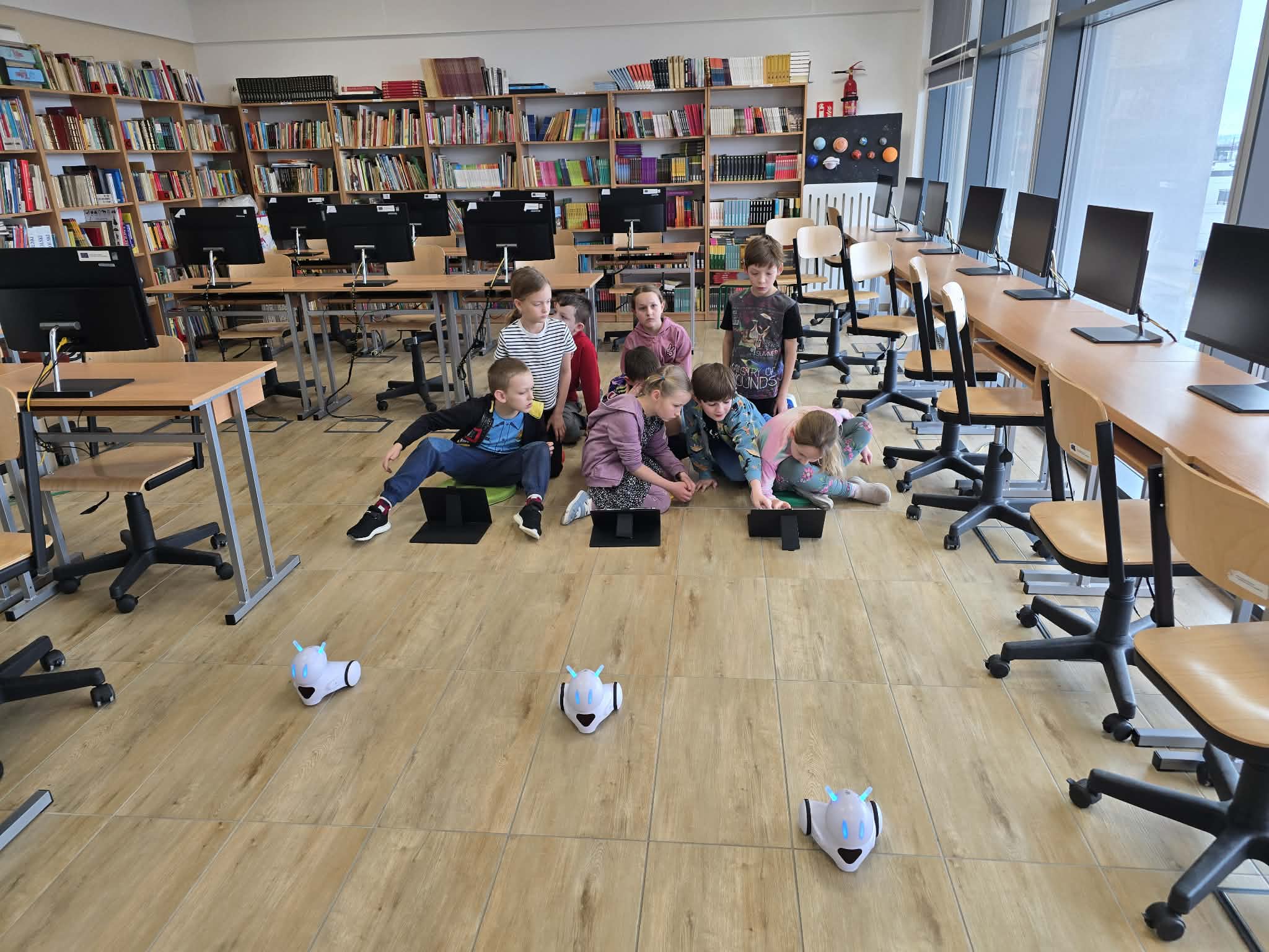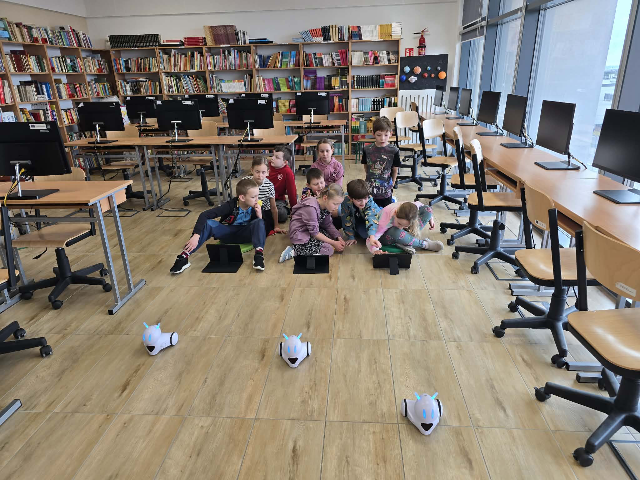 Na dzisiejszych zajęciach z informatyki w klasie 2b było wyjątkowo głośno, a emocje sięgały zenitu. Wszystko za sprawą niezwykłego wyścigu robotów Photon, który połączył naukę programowania z matematyką.