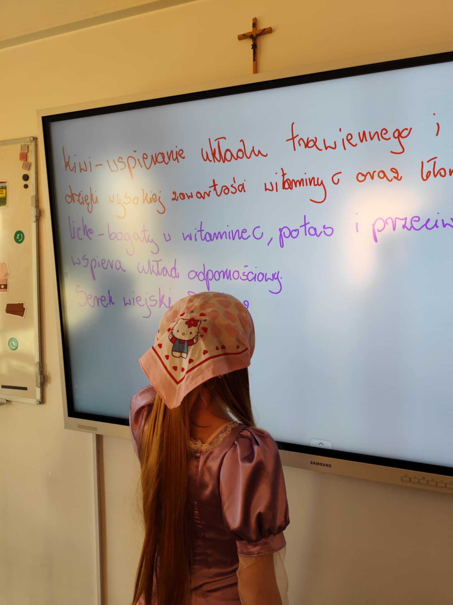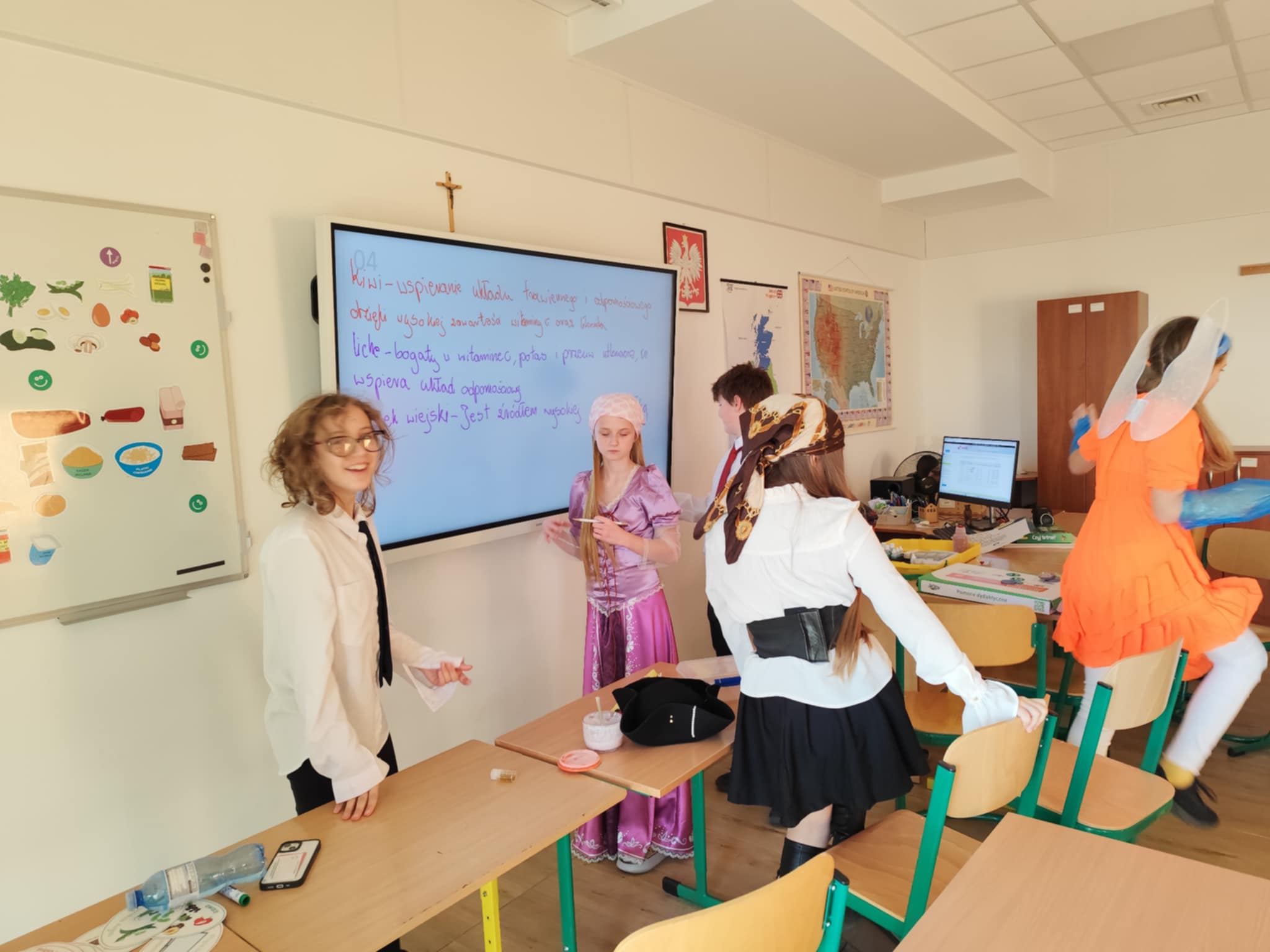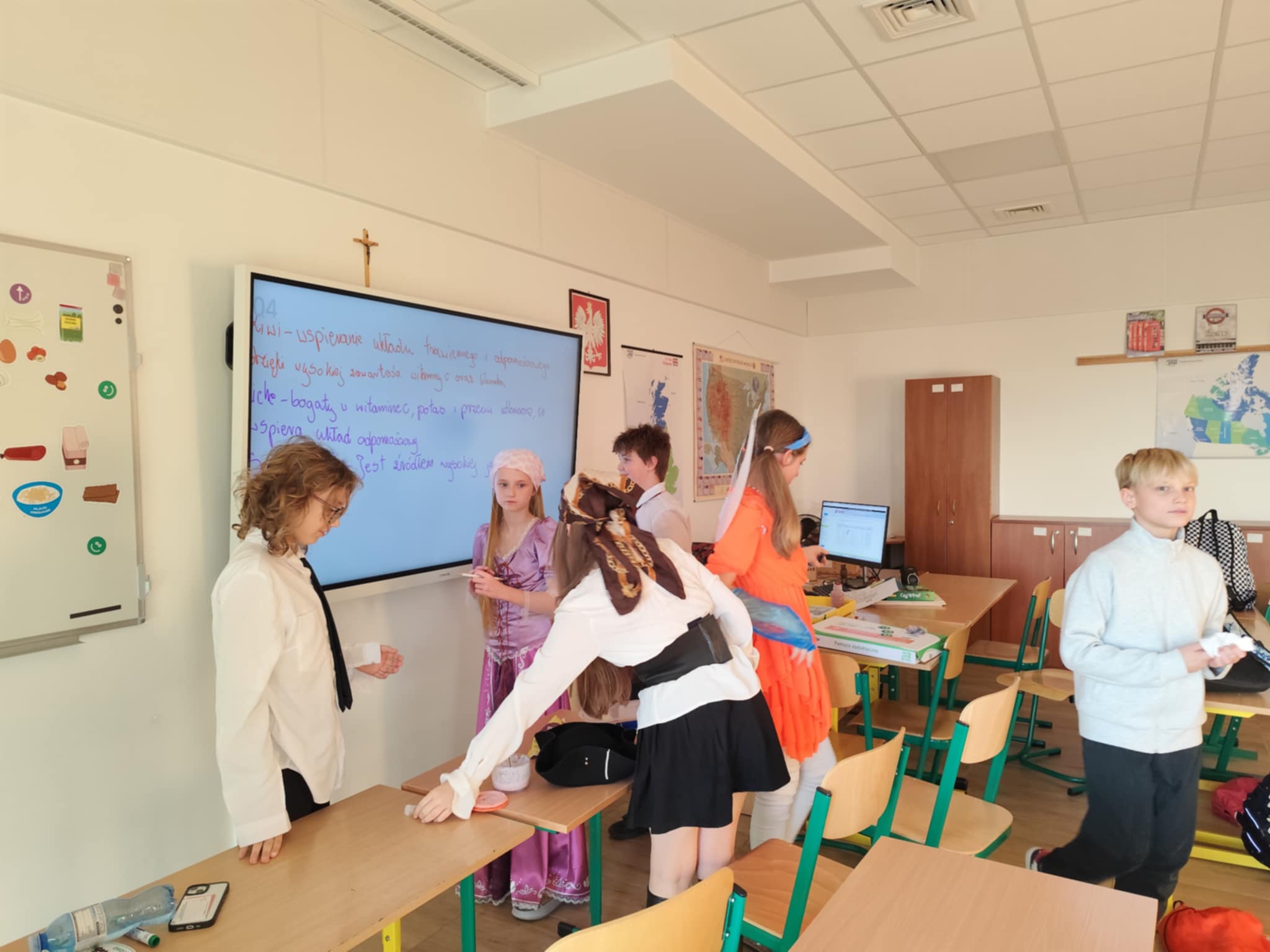 Podczas zajęć Zosia opowiadała o tym, jak ważne jest spożywanie warzyw i owoców, unikanie słodyczy i fast foodów oraz dbanie o regularne posiłki. Magnesy z jedzeniem pozwoliły na wspólne układanie piramidy żywieniowej i rozpoznawanie zdrowych produktów. Dzięki temu lekcja była nie tylko pouczająca, ale także pełna dobrej zabawy i zaangażowania.